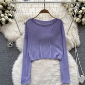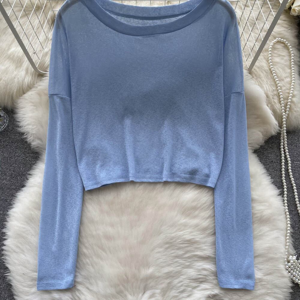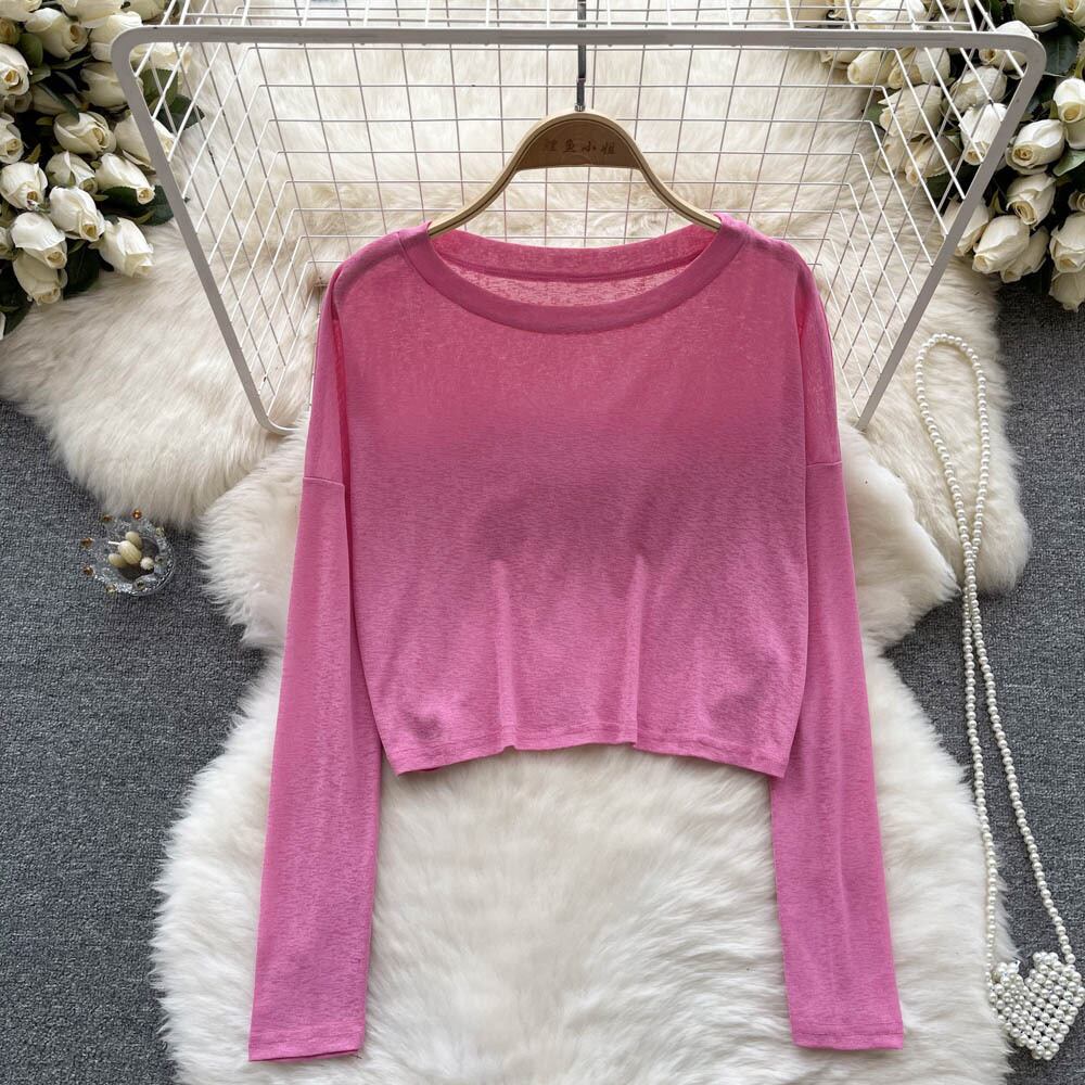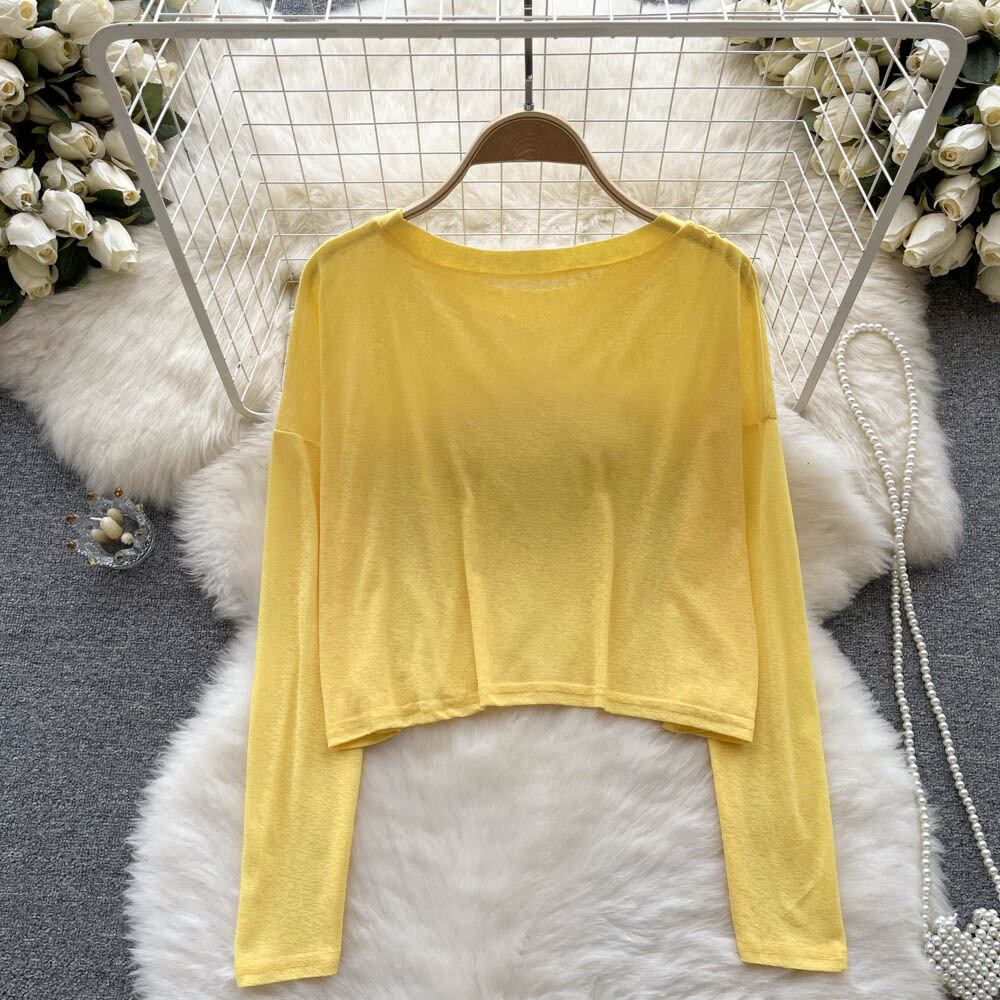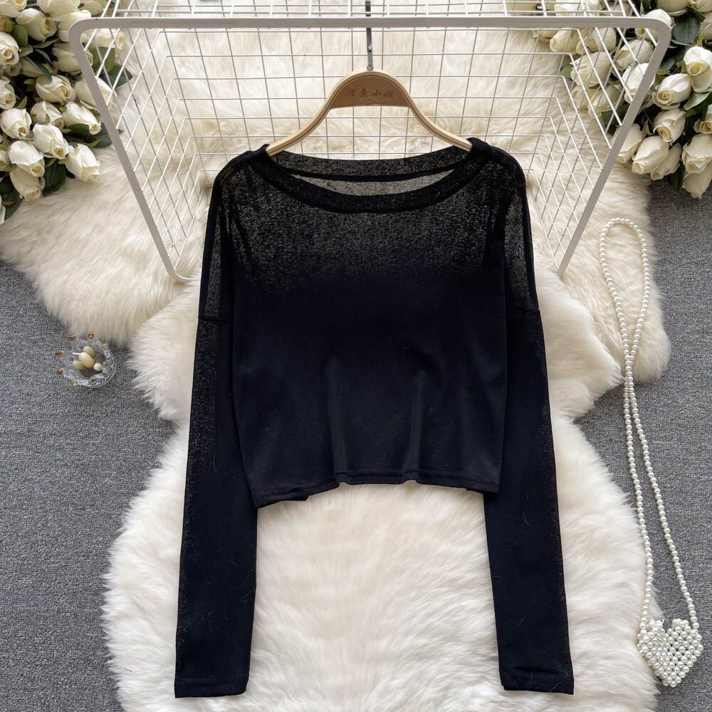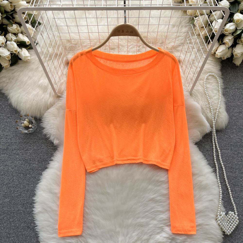 インスタイル ネット レッド ハイウエスト ショートセクション おへそ Tシャツ トップス レディース 薄手 ボトムス 長袖 無地 ラウンドネックセーター ハイウェスト ロング Oネック ソリッドカラー lyxaj88758008854