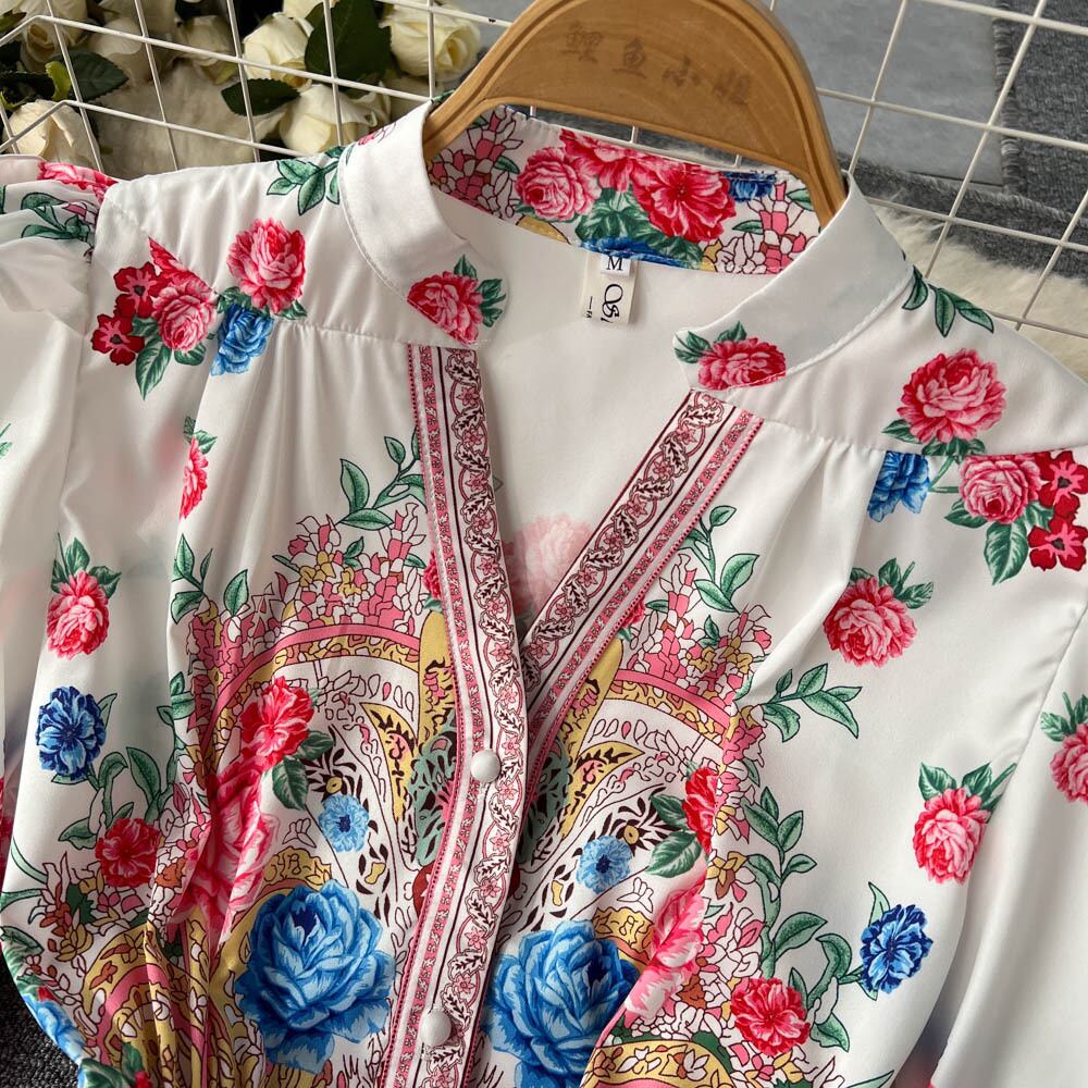 春の新作レトロパレススタイルVネックシングルブレストランタンスリーブウエスト痩身ミッドレングスプリーツドレス レース スプリング 春物 lyxaj33448240323
