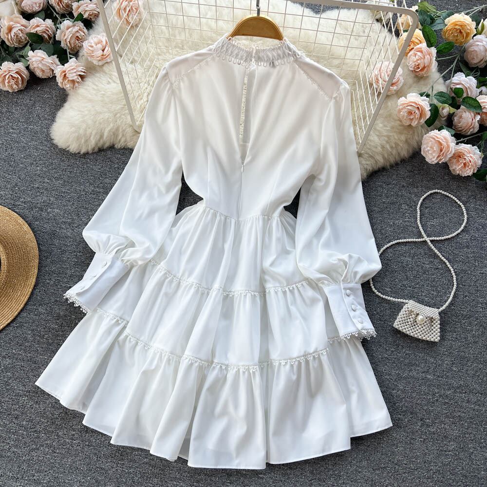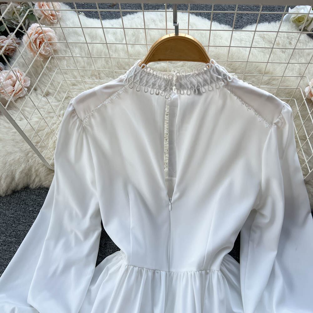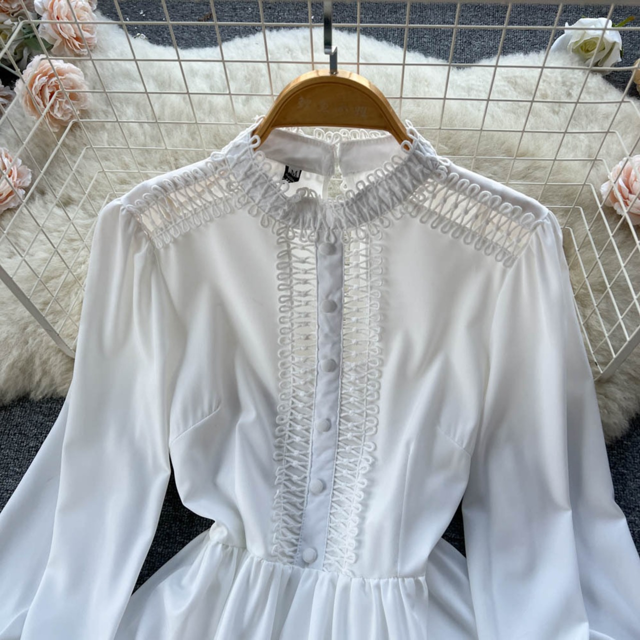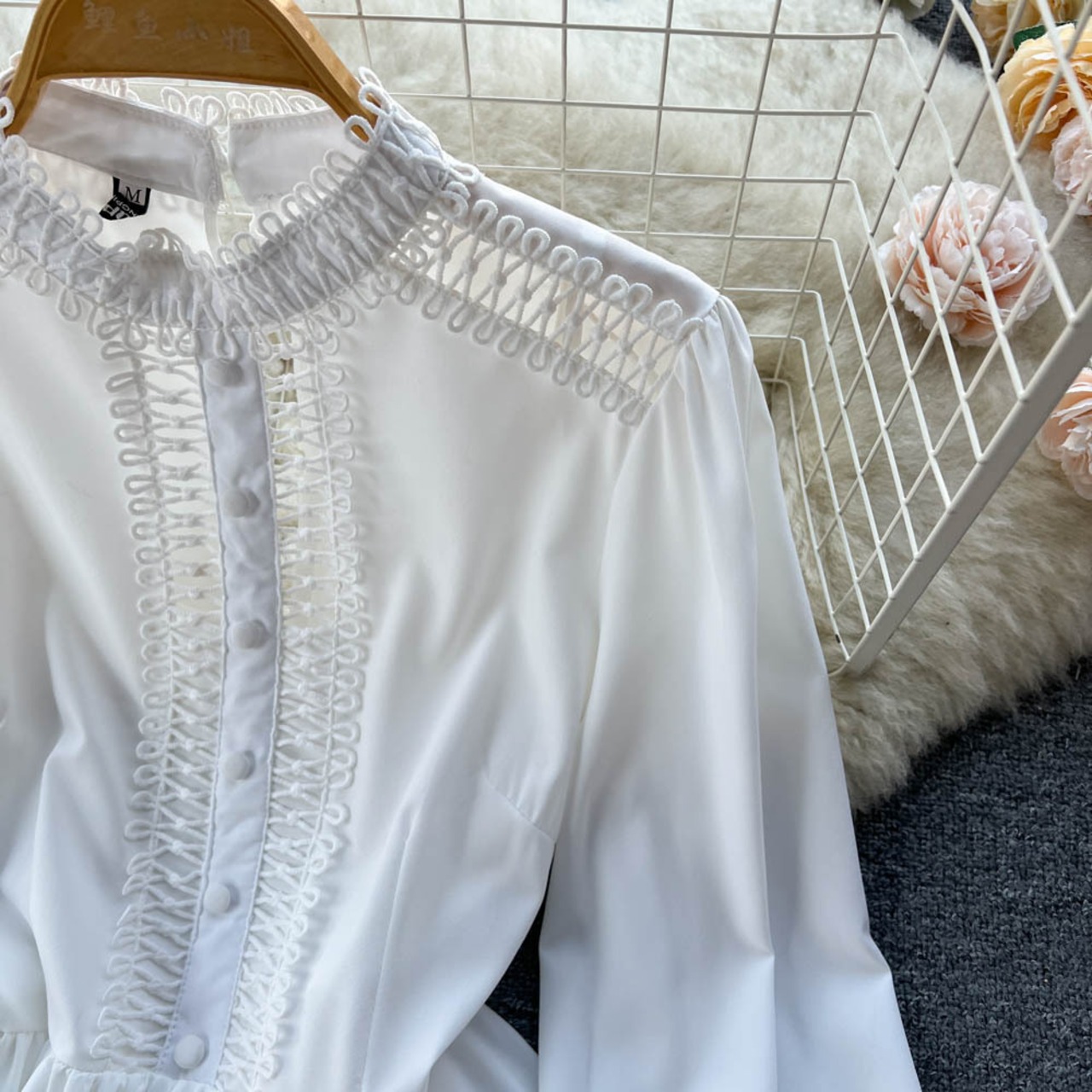 2023 春の新しいヨーロッパとアメリカのイン スタイル スタイル シックな無地長袖シングル ブレスト ボタン フリル シャツ ドレス ロング スプリング 春物 ソリッドカラー ヨーロピアン lyxaj88771835575