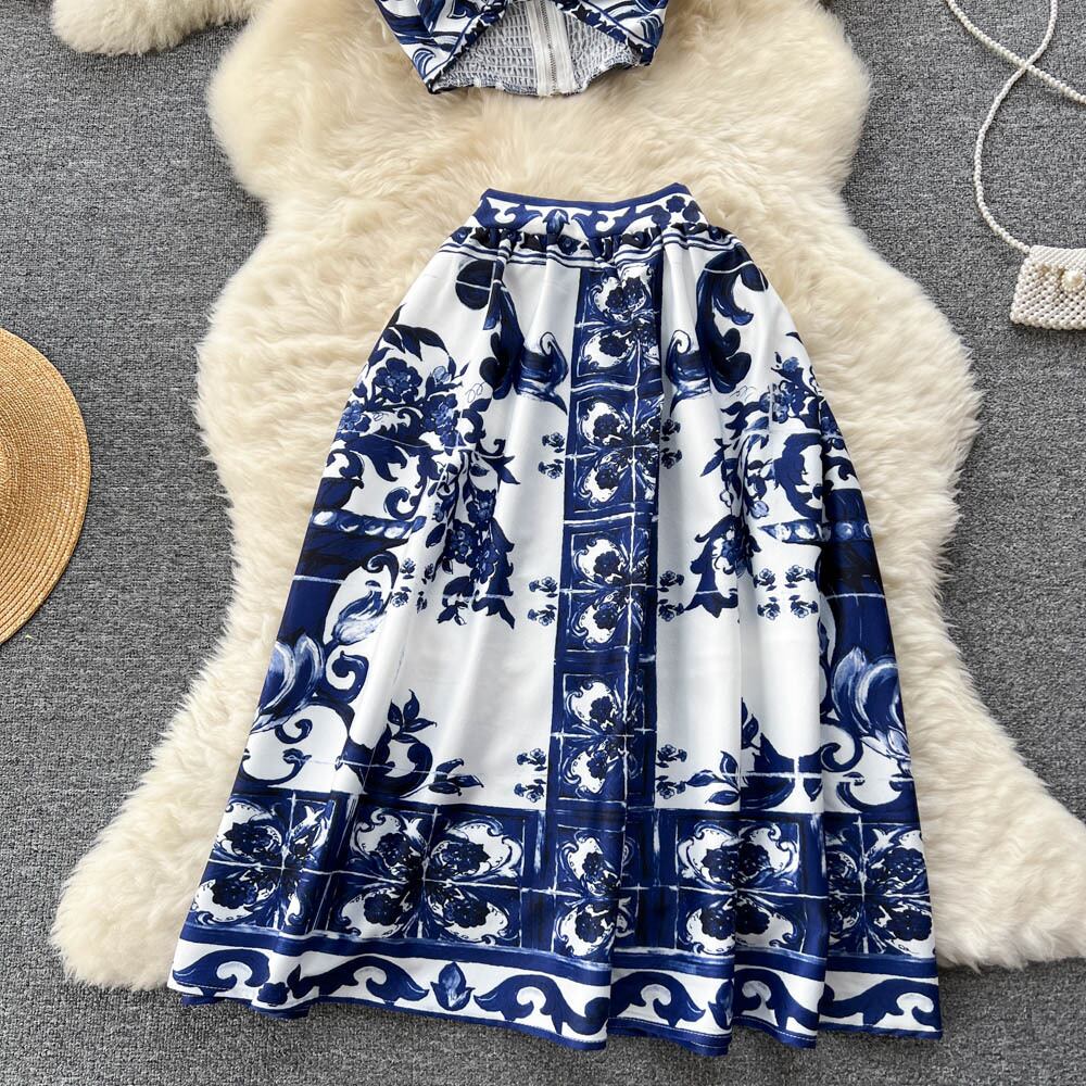 エスニックスタイルの秋のドレス 2022 新しい女性のスーツプリント小さなキャミソールミドル丈スカート 2 点セット オータム 秋物 lyxaj51972801302
