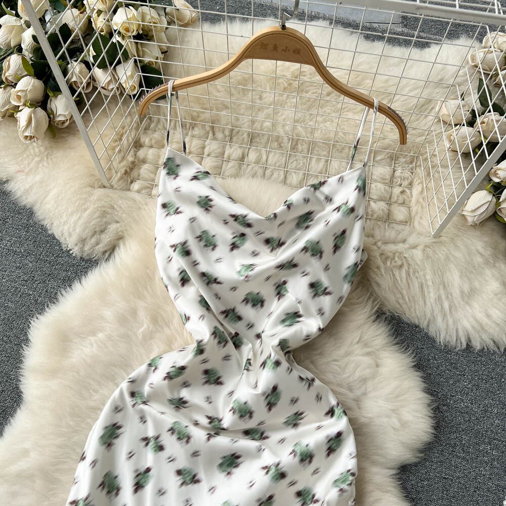 夏の新しいファッションセクシーな軽くて馴染みのあるスタイルのストレッチサテンスリムフィットバッグヒップタイダイプリントセレブストラップドレス サマー 夏物 lyxaj43135390051