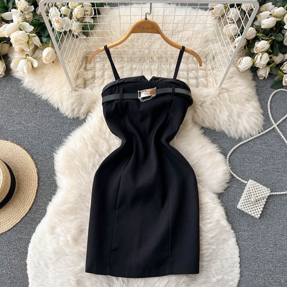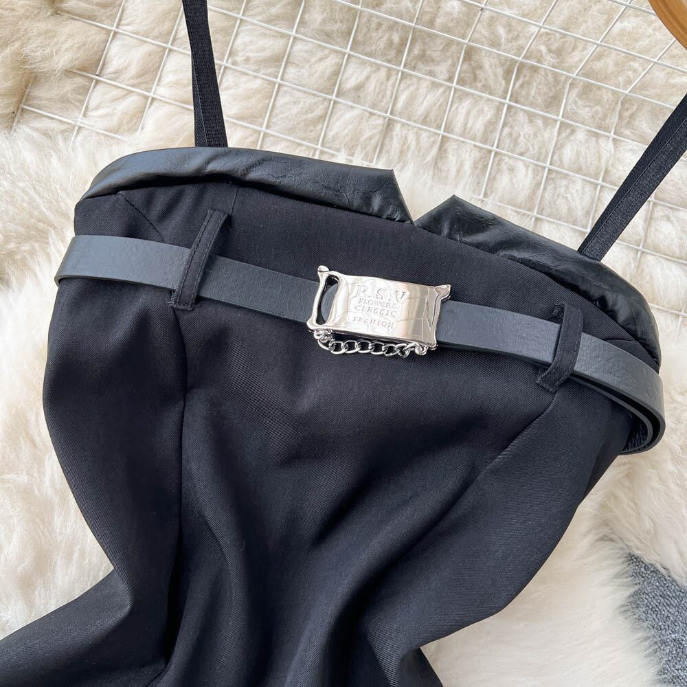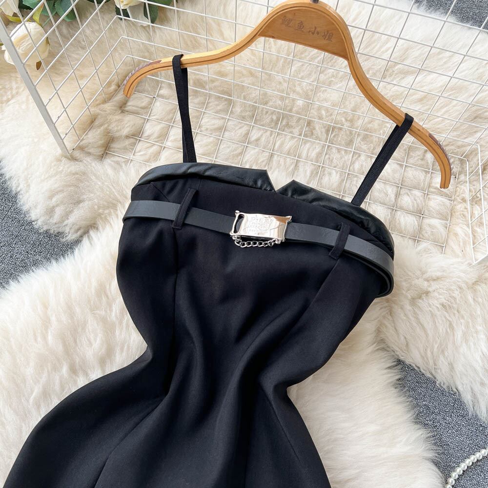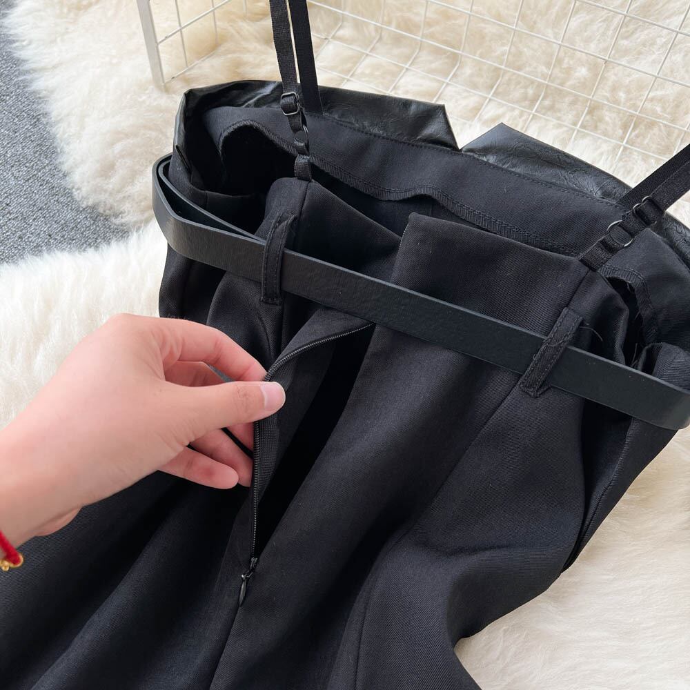 黒の秋のスーツの女性のハイエンド感ショートスモールスーツジャケット+ヒップストラップサスペンダードレス2点セット ブラック オータム 秋物 lyxaj52086399928
