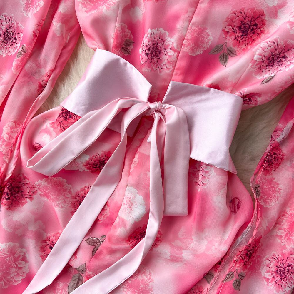 春秋新作 シフォン 大振り 花柄 優しいフレンチフェアリードレス Vネック バッグ ヒップ ロングスカート トレンド スプリング 春物 オータム 秋物 lyxaj49919380981