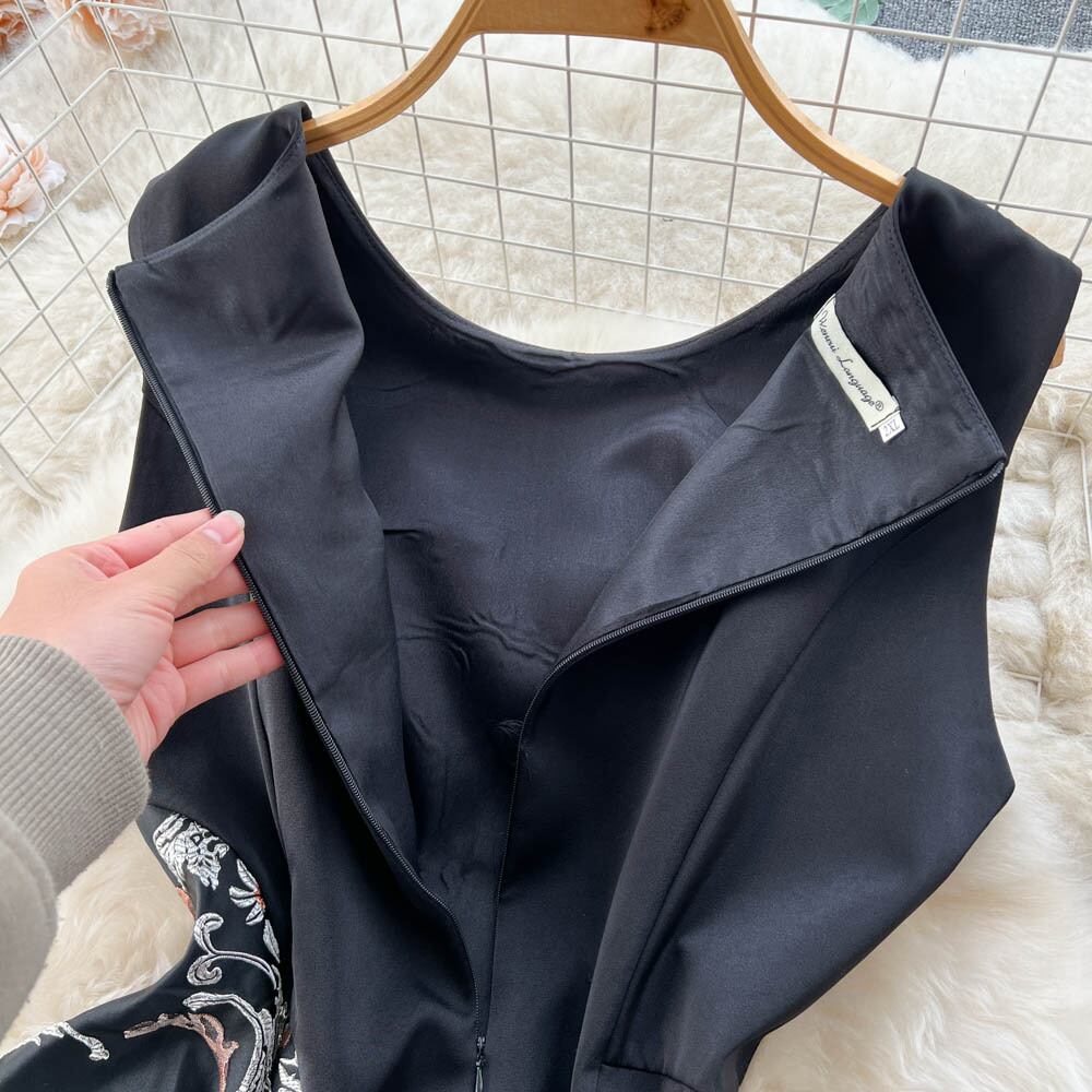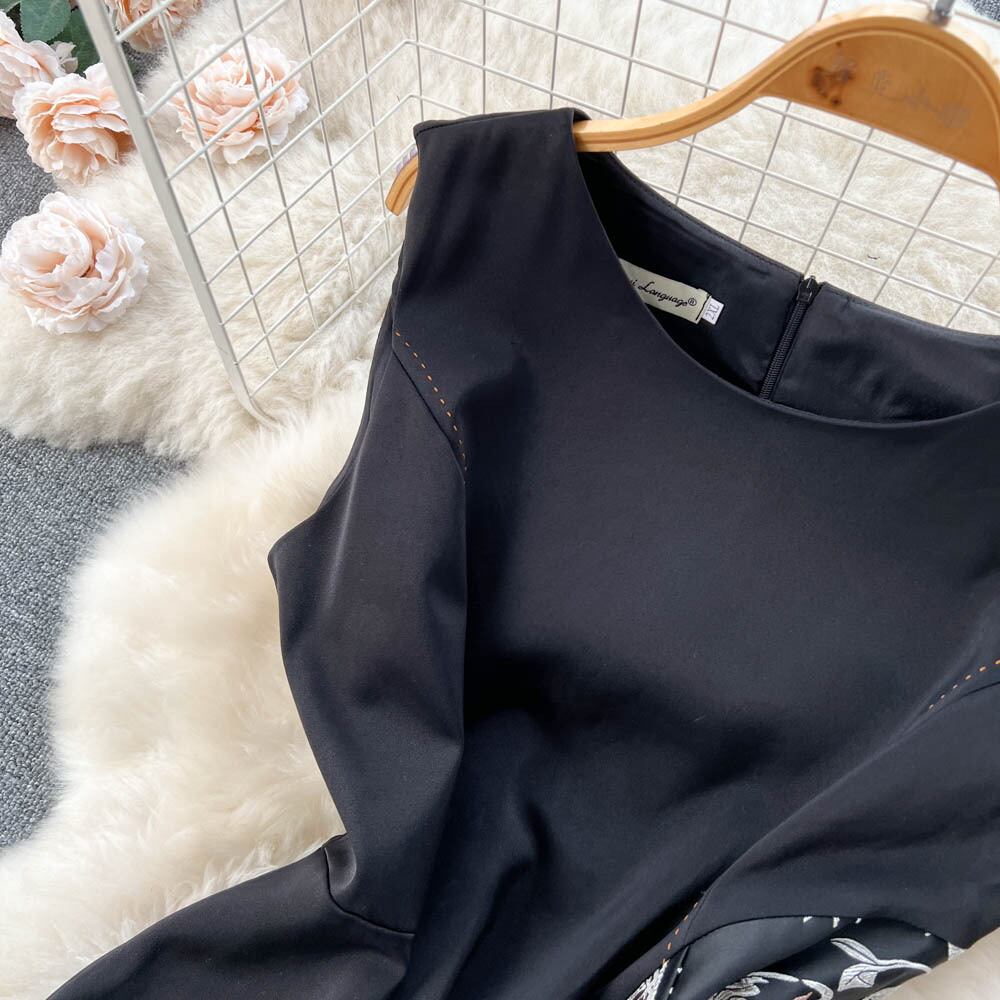 ヘップバーン風フレンチレトロリトルブラックドレス女性春夏新作ファッション立体ジャカードノースリーブAラインスカートプリンセススカート スプリング 春物 サマー 夏物 lyxaj90518809413