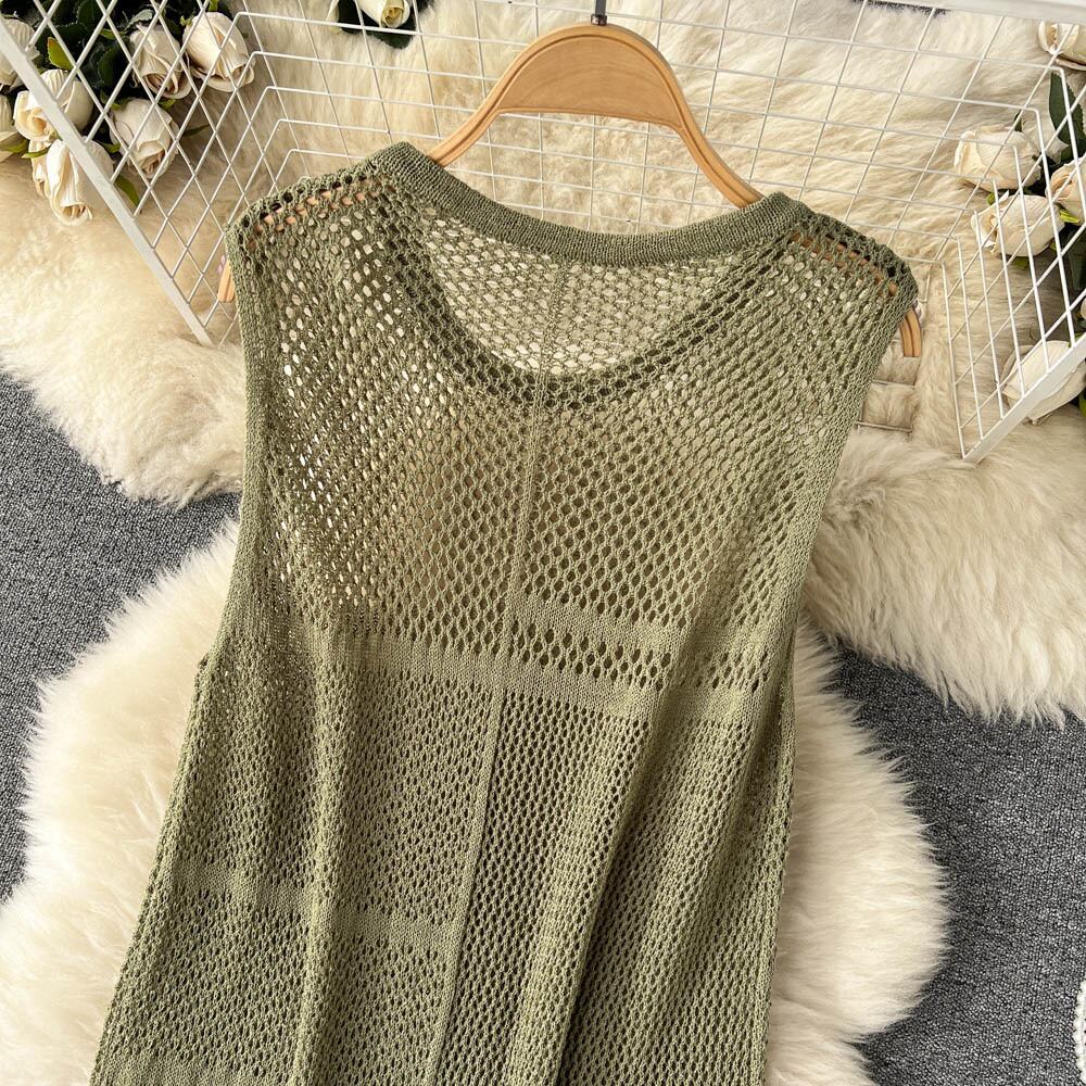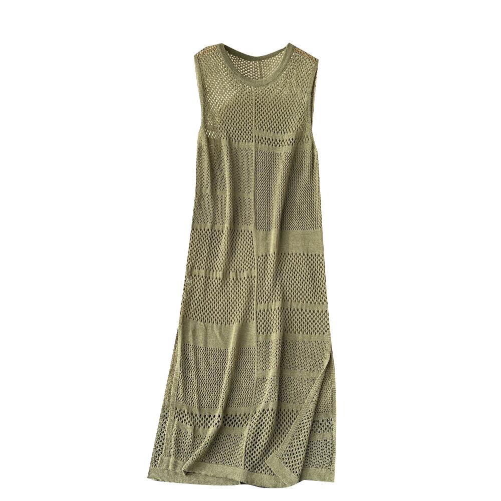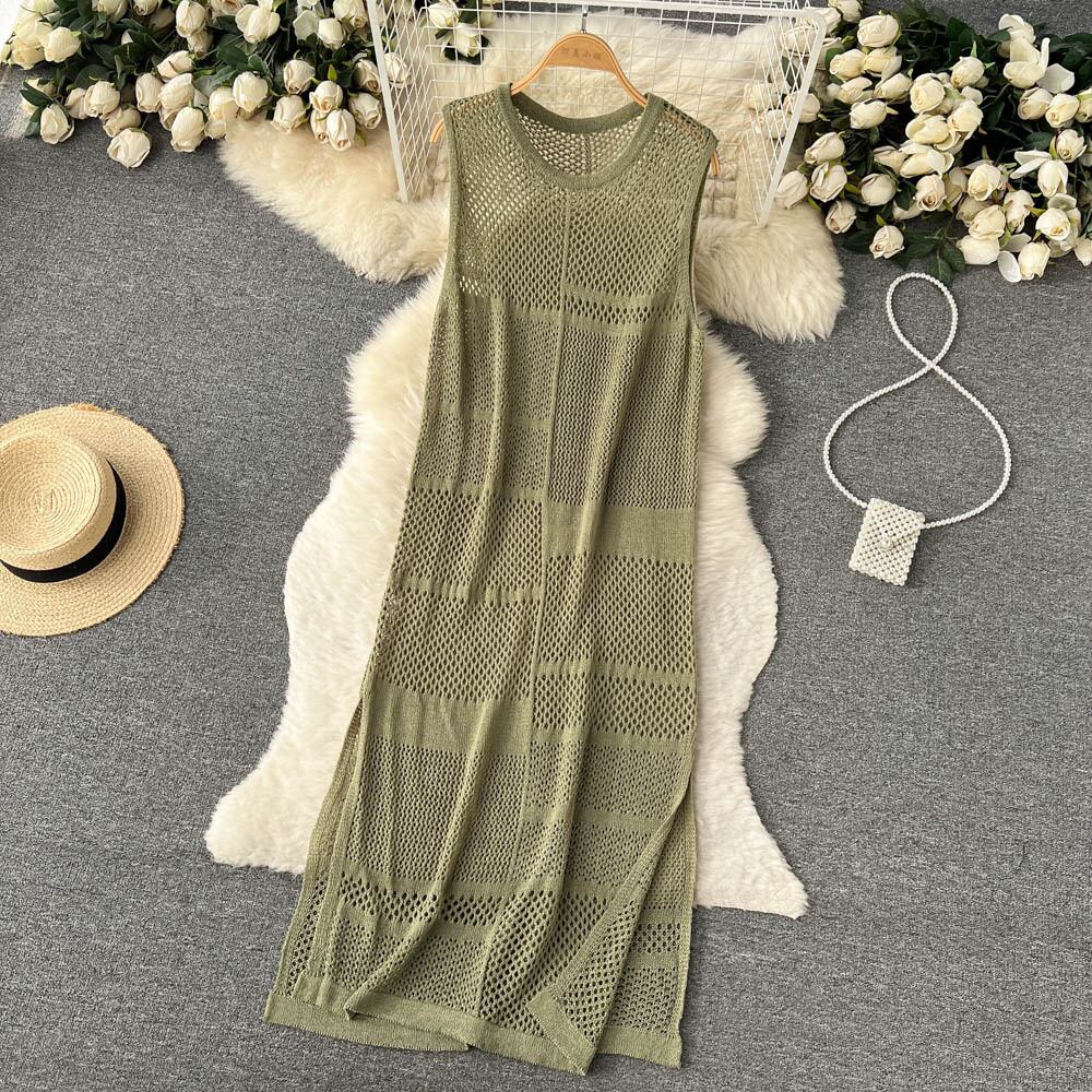 春夏高級フレンチレトロスモールフレグランスシックで優しいニット中空ノースリーブルーズスリットワンピース スプリング 春物 サマー 夏物 lyxaj62219150854