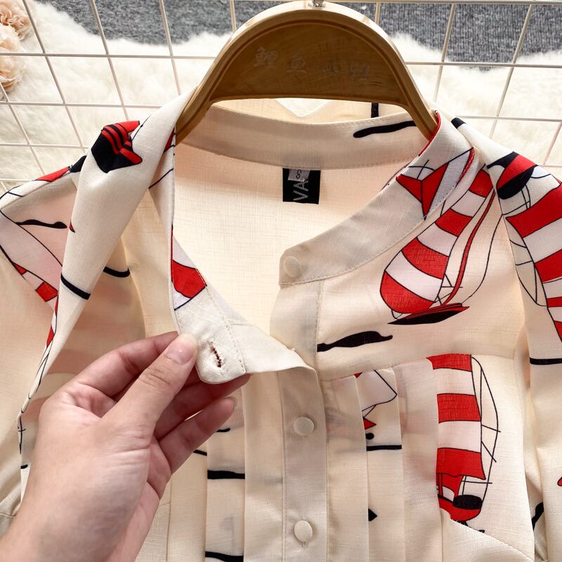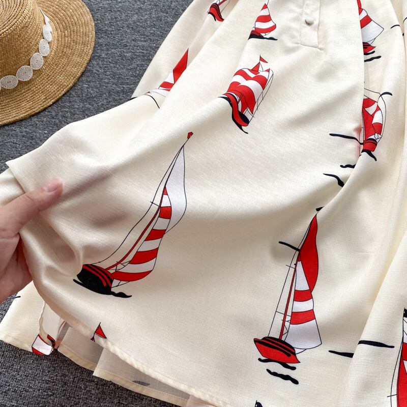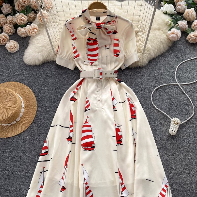-エンドウエスト痩身気質半袖ドレス夏の女性のフレンチシックな美しいシャツロングスカートトレンディ サマー 夏物 lyxaj47807451496