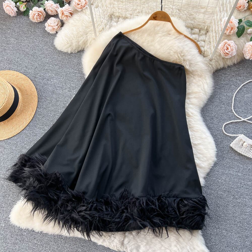 -高品質のテルファーモザイクサテンスカート女性の秋と冬のオールマッチハイウエストミッドレングスの大きなスイングAラインスカート ハイウェスト オータム 秋物 ウィンター 冬物 lyxaj76278485426