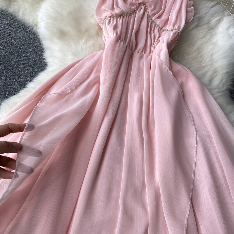 夏のプリンセスドレス女性プリーツウッド耳優しい風ハイウエストビッグスイングホリデー初恋妖精スカート ハイウェスト サマー 夏物 lyxaj65672664117
