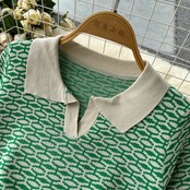夏のヨーロッパとアメリカのプリントジャガードニットスーツの女性の半袖のシックなトップ+ハイウエストのワイドレッグパンツのツーピースセット ハイウェスト サマー 夏物 ヨーロピアン lyxaj46940479990