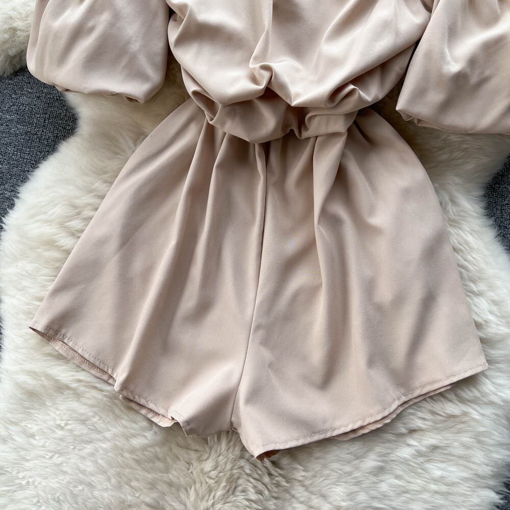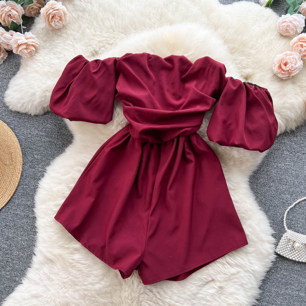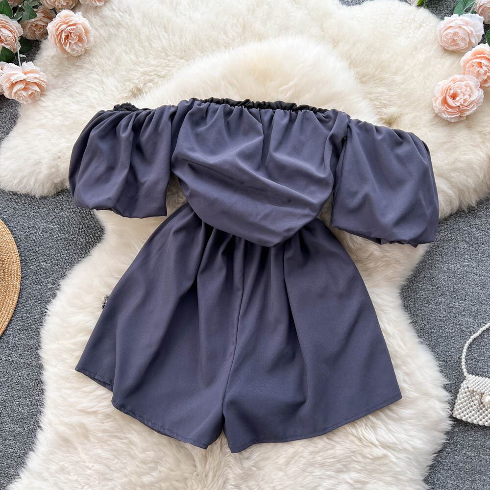 フレンチスタイルのデザイン気質有名人チューブトップパフスリーブウエストジャンプスーツ女性ニッチAラインワイドレッグショーツ ブルマー lyxaj42194662213
