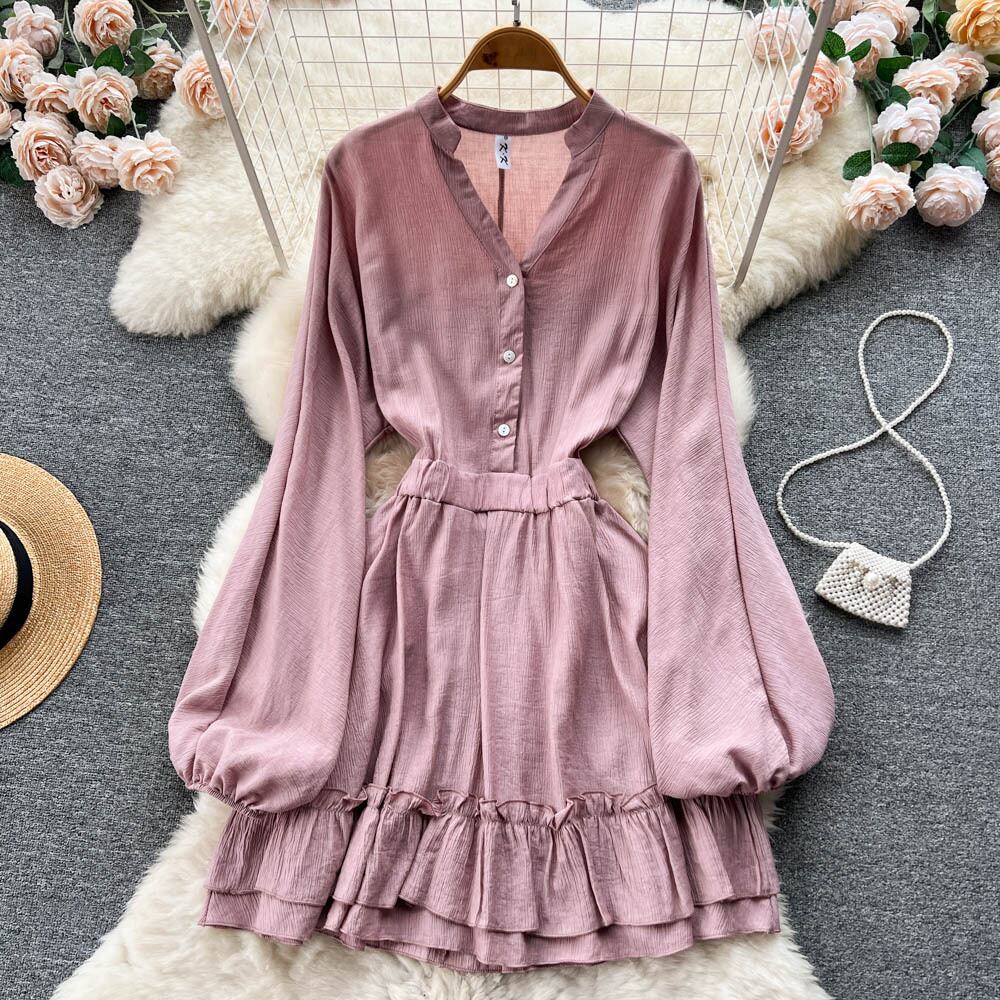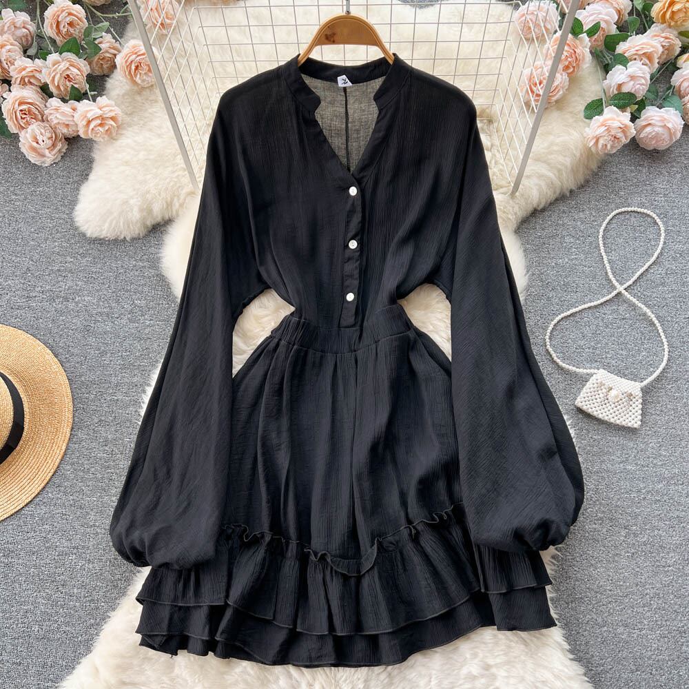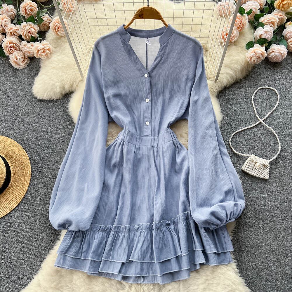 -エンドレッド気質ランタンスリーブドレス秋の婦人服2022新しいフリルウエスト付きAラインスカート オータム 秋物 lyxaj27439336738