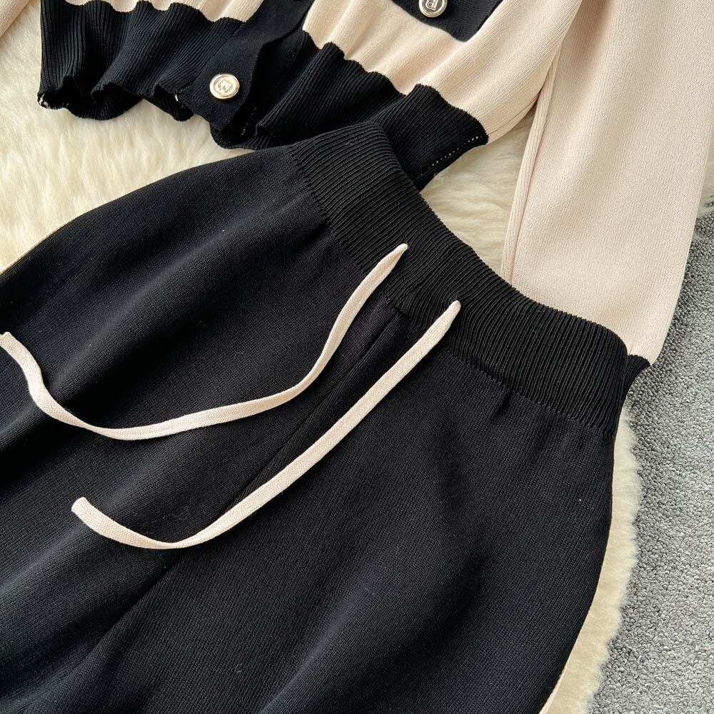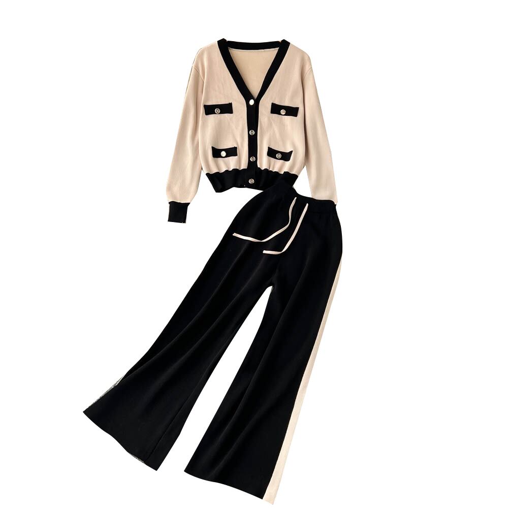 シックなファッションスーツのバージョンの女性の秋の新しいスタイル小さなフレグランス V ネック ニット カーディガン ワイドレッグ ロング パンツ 2 点セット オータム 秋物 Vネック lyxaj2029573925