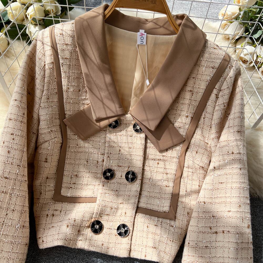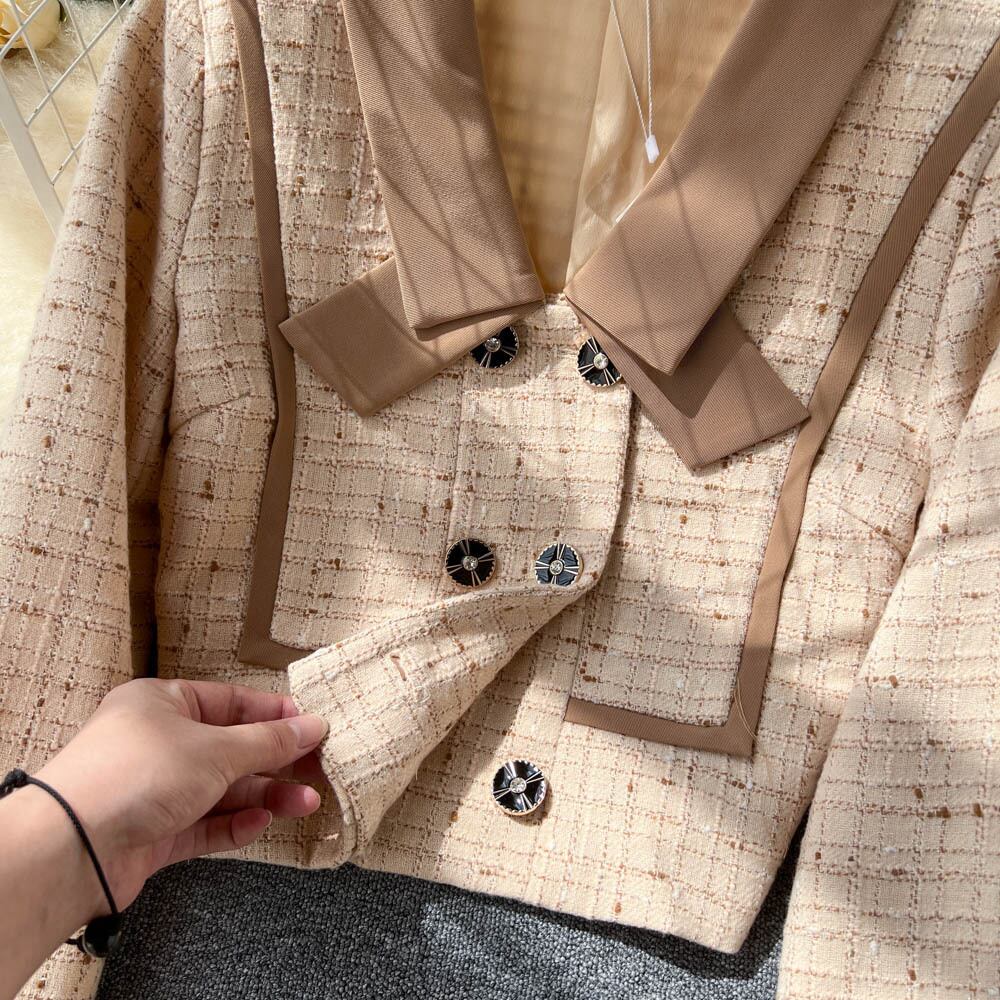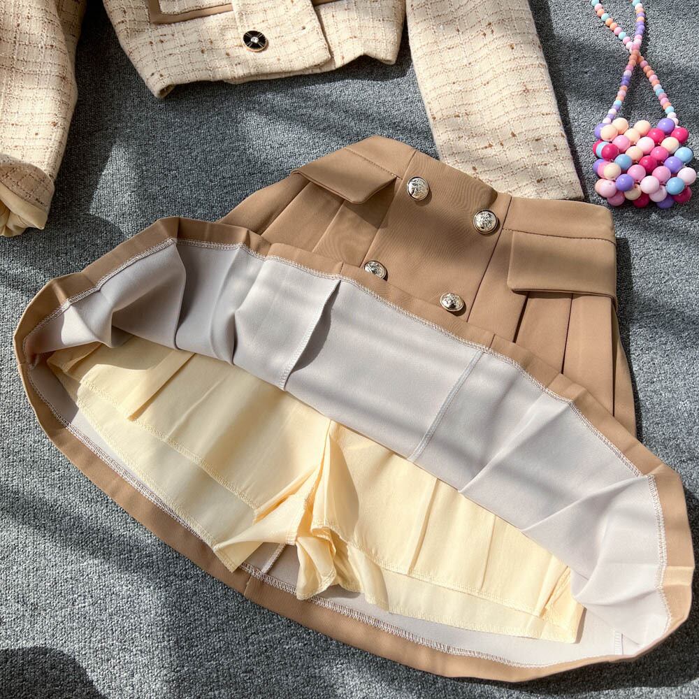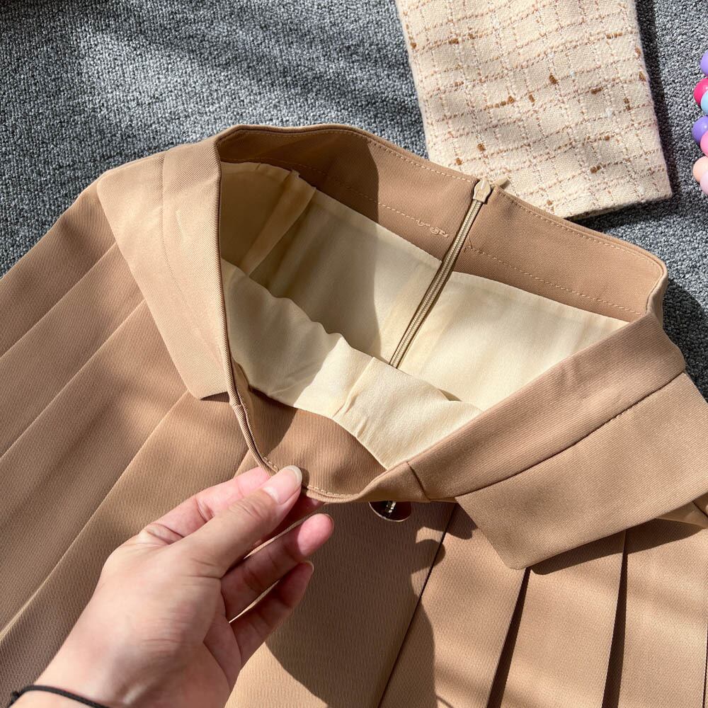 カレッジスタイルのツーピーススーツの女性の秋の気質のバージョンの有名人の長袖のショートコートハイウエストのハーフレングスのプリーツスカート ハイウェスト ロング オータム 秋物 lyxaj97674558820