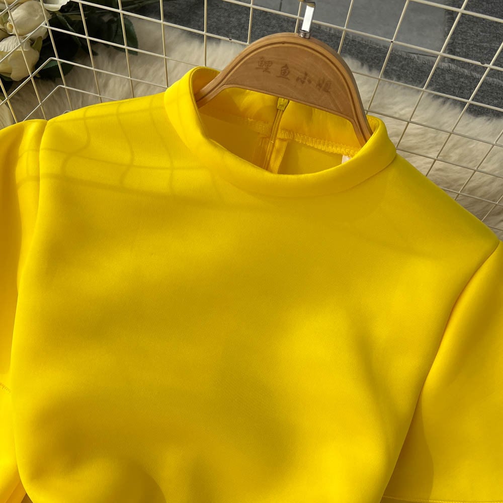 春夏新作 バブル 半袖 スリム フレンチスタイル ニッチ ミドル丈 イレギュラー オーガンジー ワンピース スプリング 春物 サマー 夏物 lyxaj80875062163