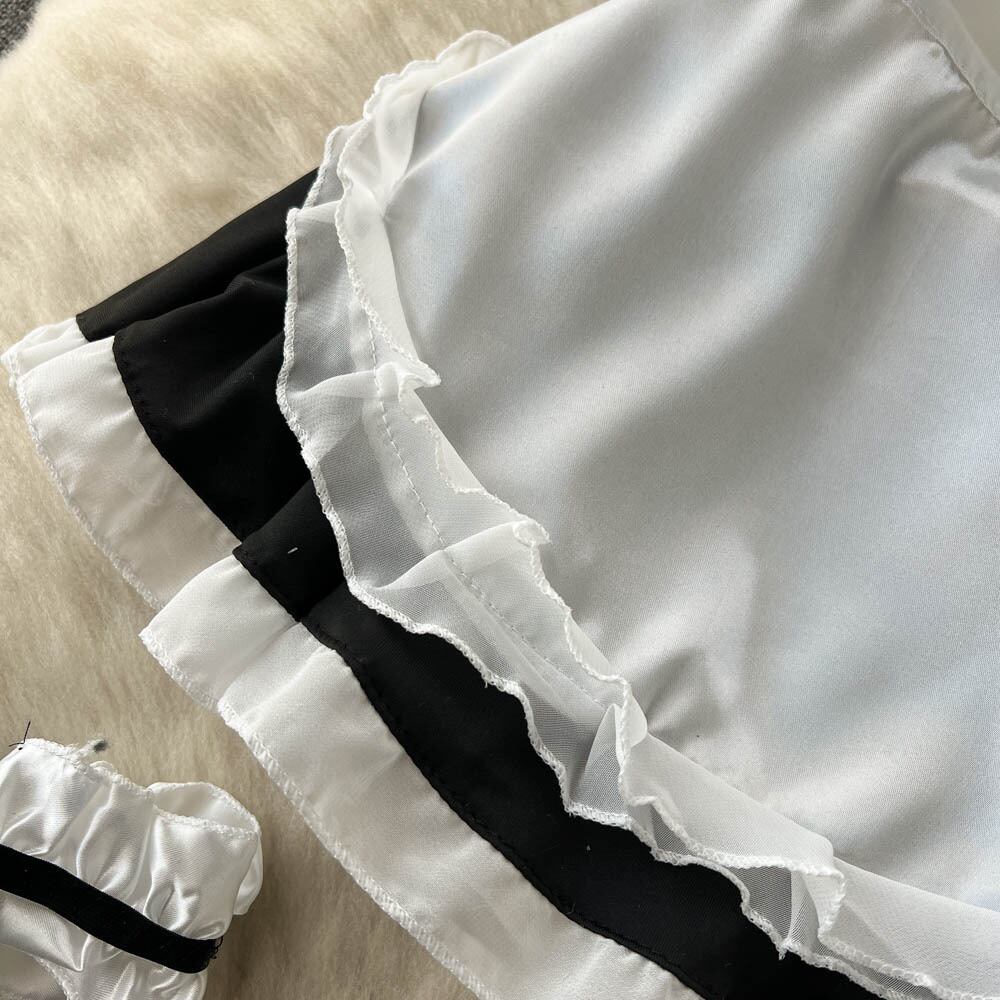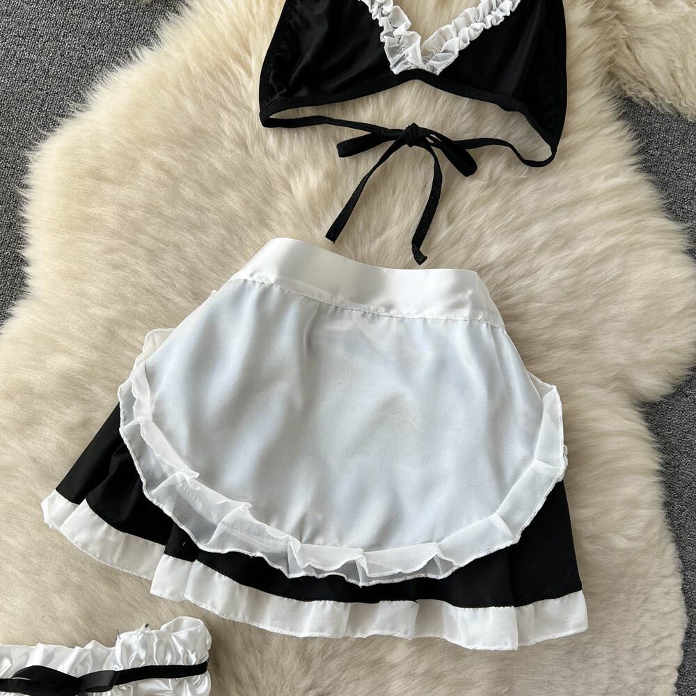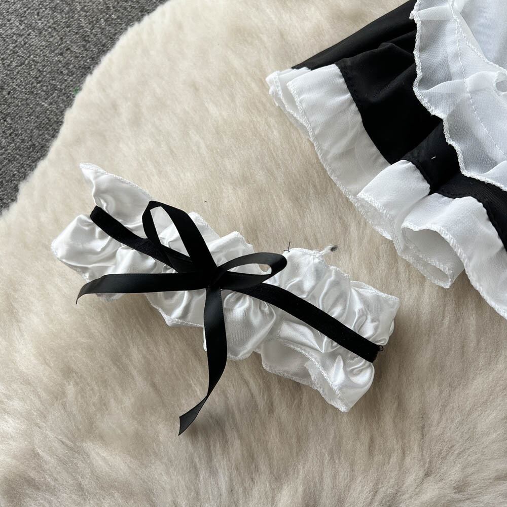 夏の純粋な欲望セクシーなコスプレ メイド スーツ V ネック ストラップ チューブ トップ コントラスト カラー レース ショート スカート サマー 夏物 Vネック ピュア lyxaj47437136631
