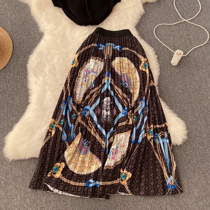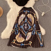 欧米風インスーツ レディース 丸首ノースリーブセーター+ミドル丈プリーツAラインスカート 洋風ツーピースセット Oネック ヨーロピアン lyxaj51121720729