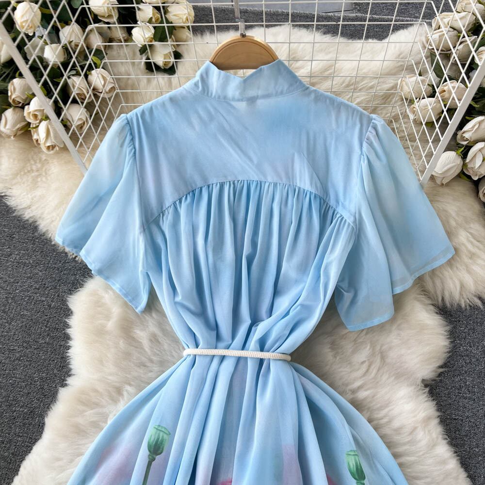 夏の新しいボヘミアン ドレス女性の半袖穏やかな風プリント ドレス気質プリーツ フェアリー ドレス サマー 夏物 lyxaj39807481386
