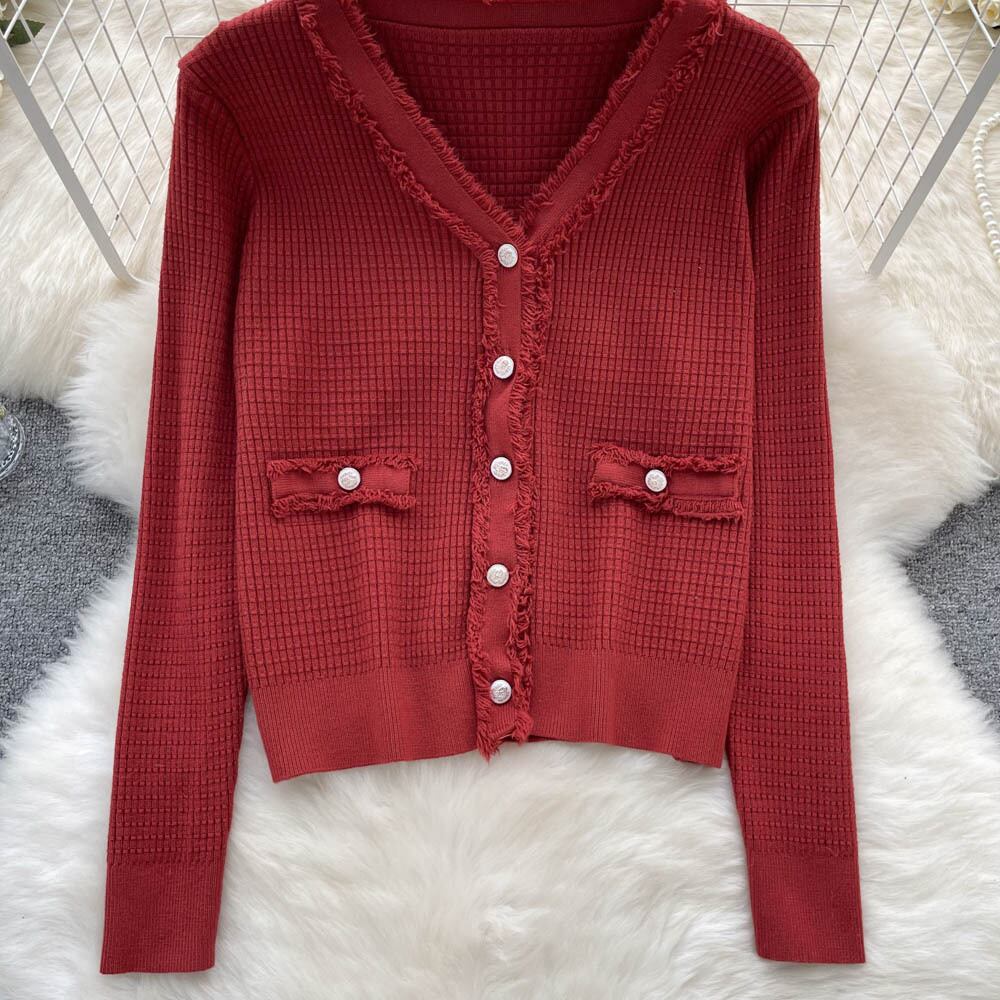 怠惰な風赤い気質 V ネック ニット カーディガン ジャケット秋の新しい婦人服ゆったりと多目的な長袖トップ潮 ロング レッド オータム 秋物 Vネック lyxaj8721559595