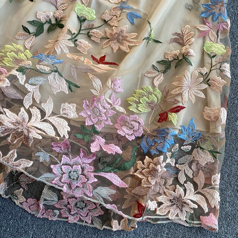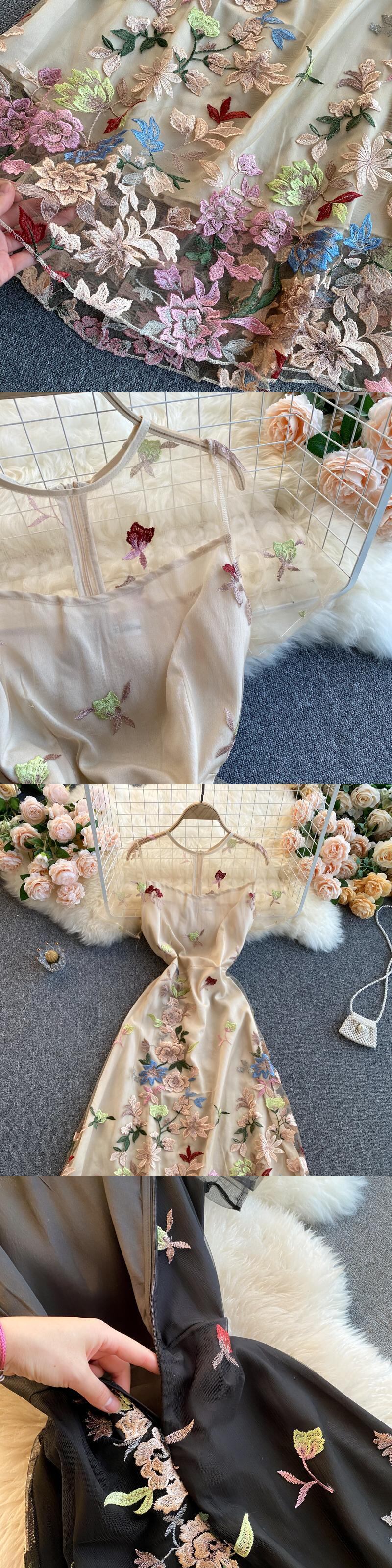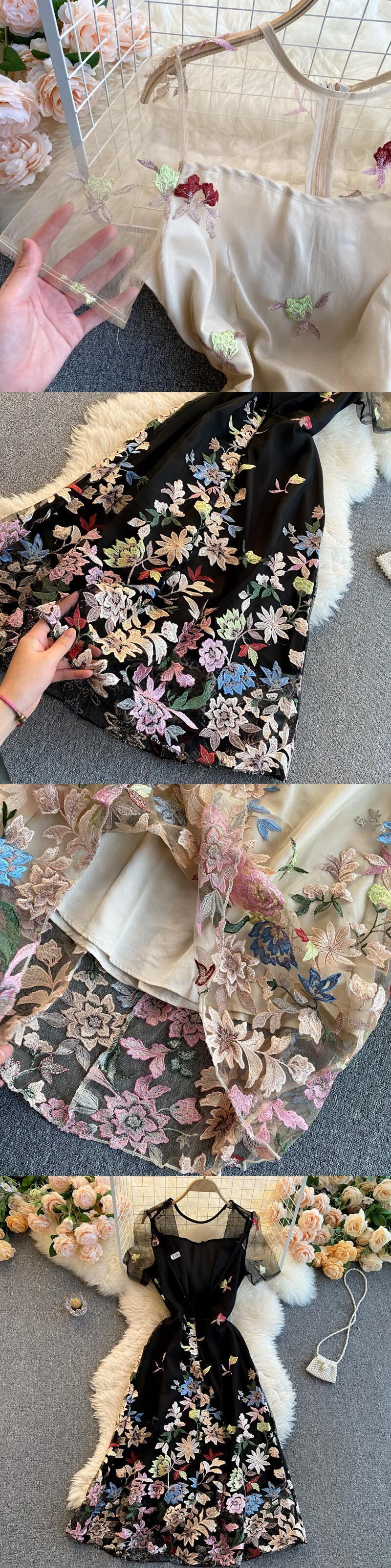 夏の新しいメッシュ刺繍ライト調理スタイル フレンチ レトロ ウエスト痩身ミッドレングス プリント大スイング ドレス サマー 夏物 lyxaj28560733324