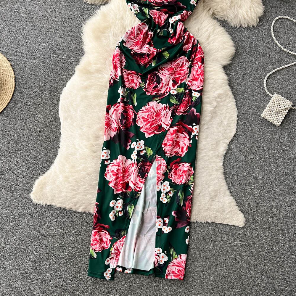 2023 夏新 V ネック中華風ライト調理ヒップラップチャイナフェミニンセクシーなラップヒップロングスカートスリットドレス サマー 夏物 Vネック lyxaj73748735182