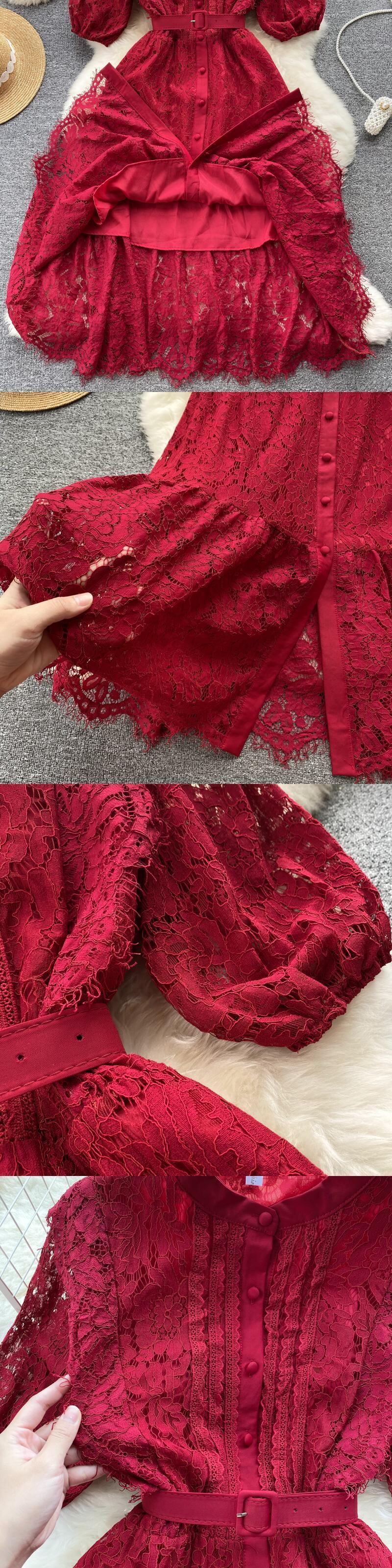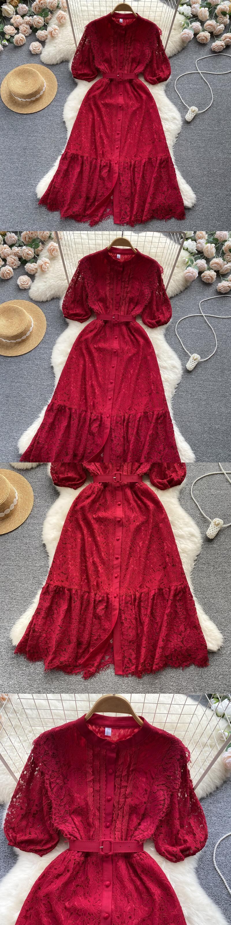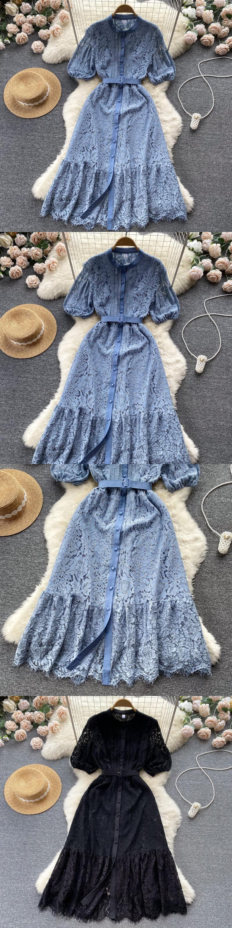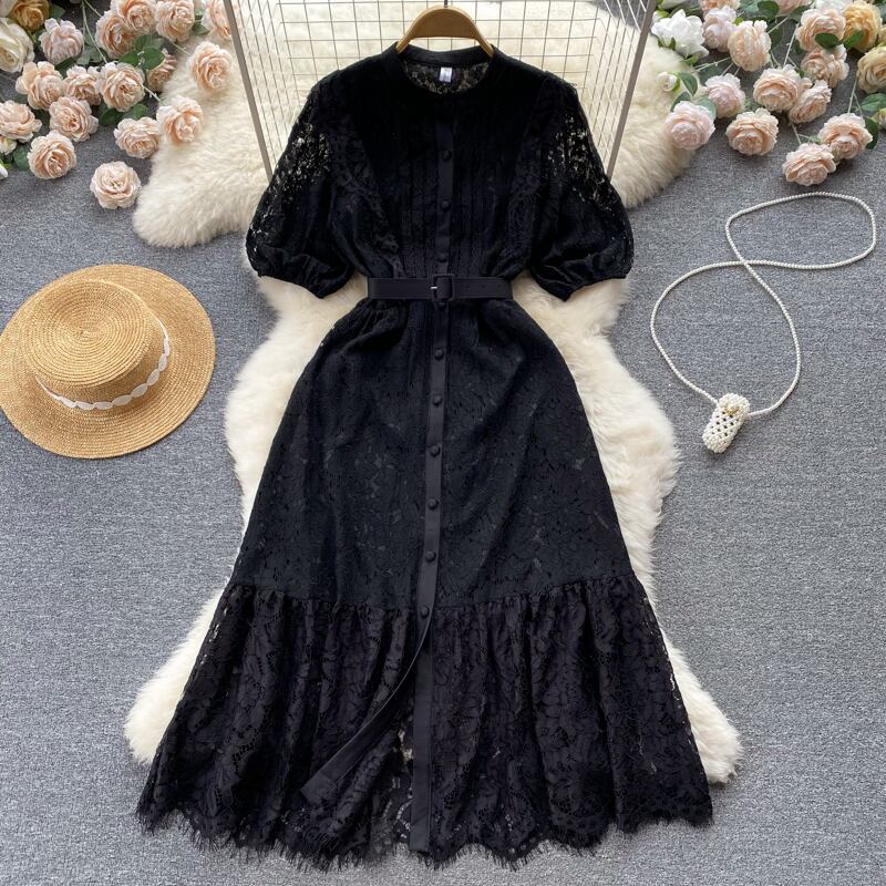 シスターユウの軽くて馴染みのあるスタイルの雰囲気のドレス夏の女性のシックで美しい半袖レースの見事なミドル丈のスカートの潮 サマー 夏物 lyxaj30217606459