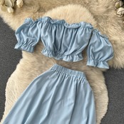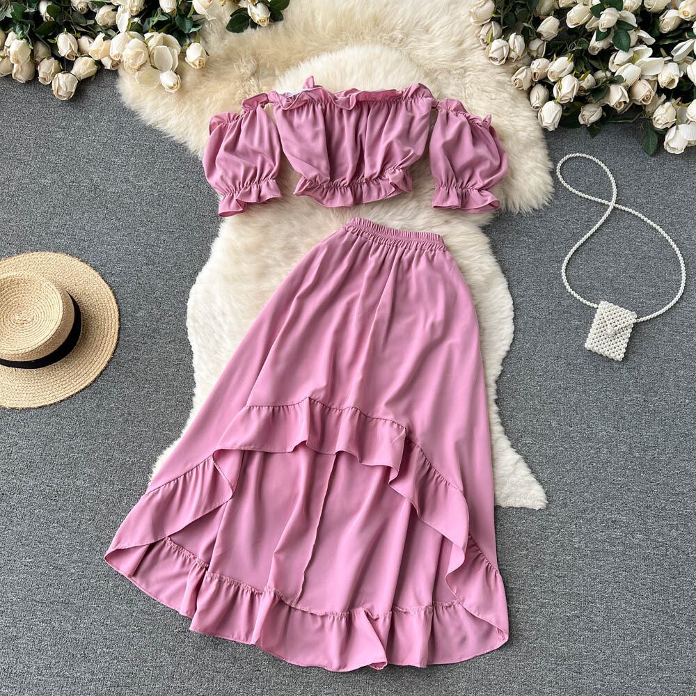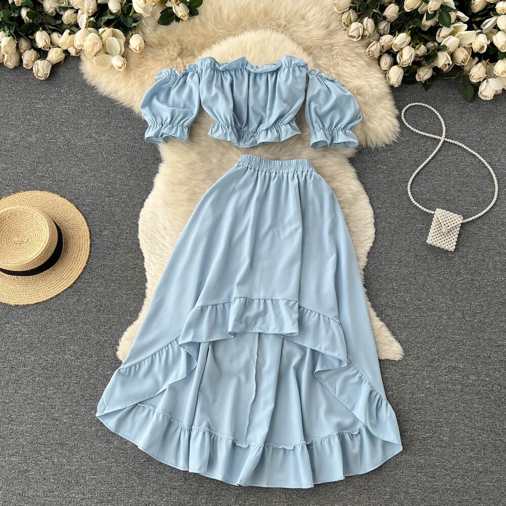 スパイス ガールズ スーツ オフショルダー オフショルダー ショートトップ + ウエスト痩せ イレギュラー フリル スカート 2点セット lyxaj32368988840