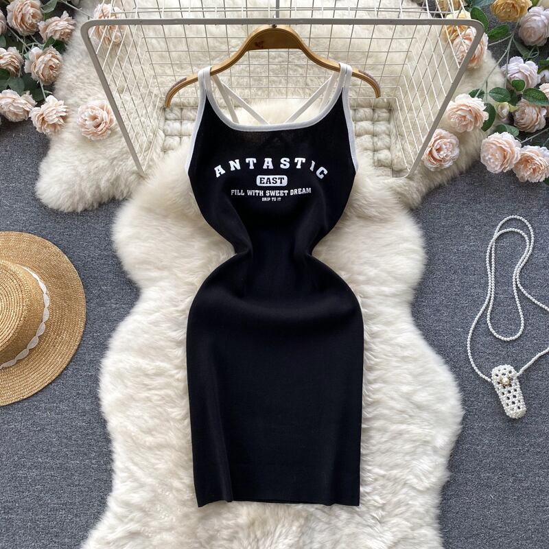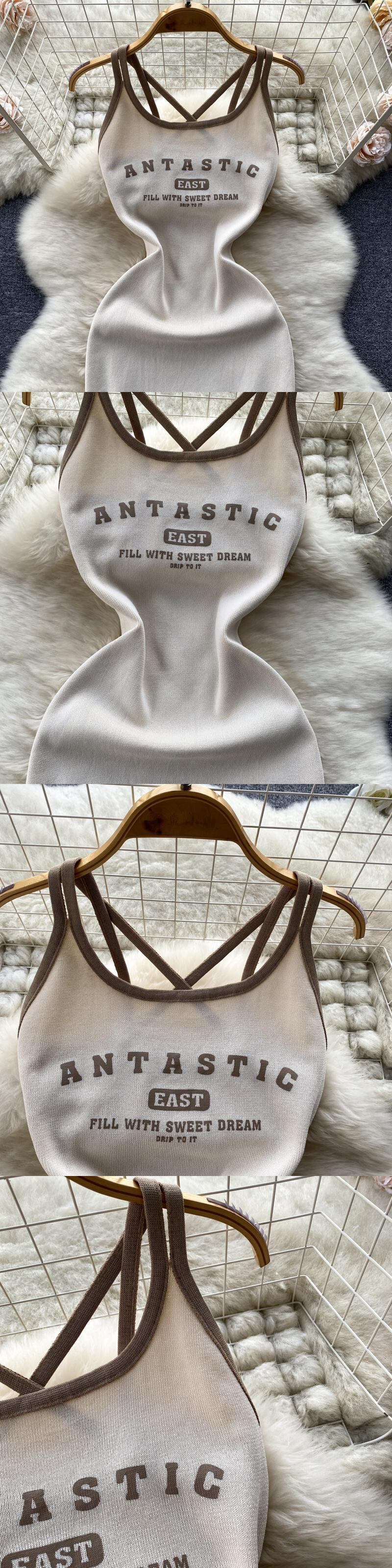 2023 夏新レタープリントスポーツベストスカート女性のバッククロスバッグヒップウエストサスペンダードレス サマー 夏物 lyxaj71448442844