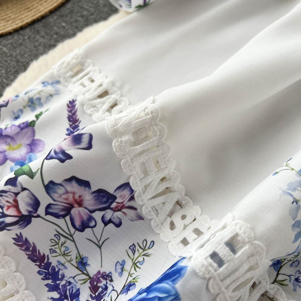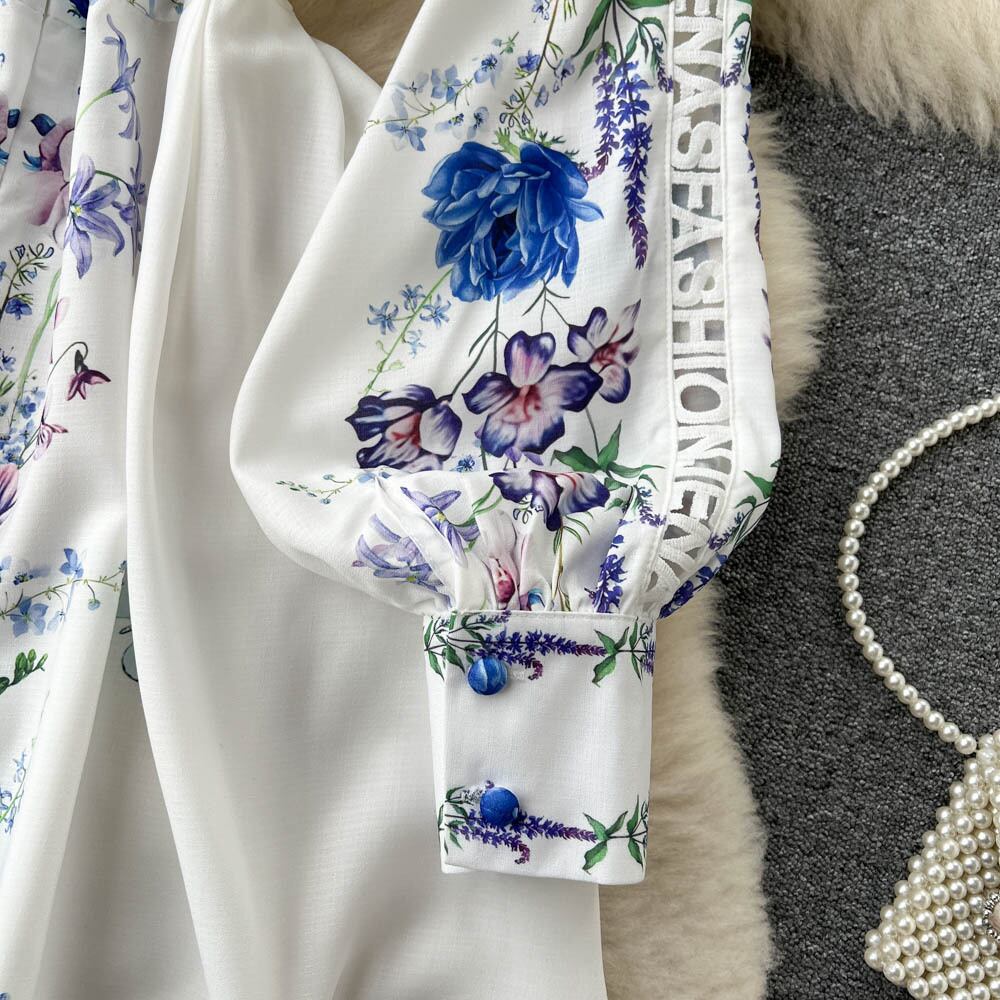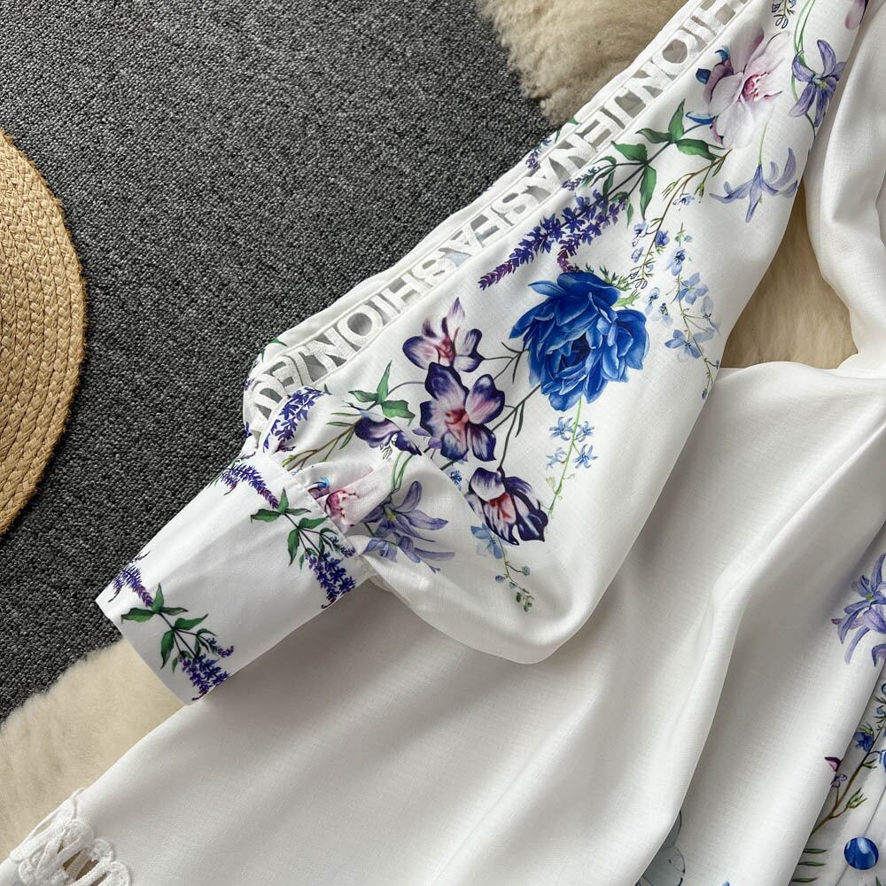 春と秋の新作フレンチコートスタイルレース中空スタンドカラー長袖プリントAラインスカートフェアリードレス ロング スプリング 春物 オータム 秋物 lyxaj88627511922