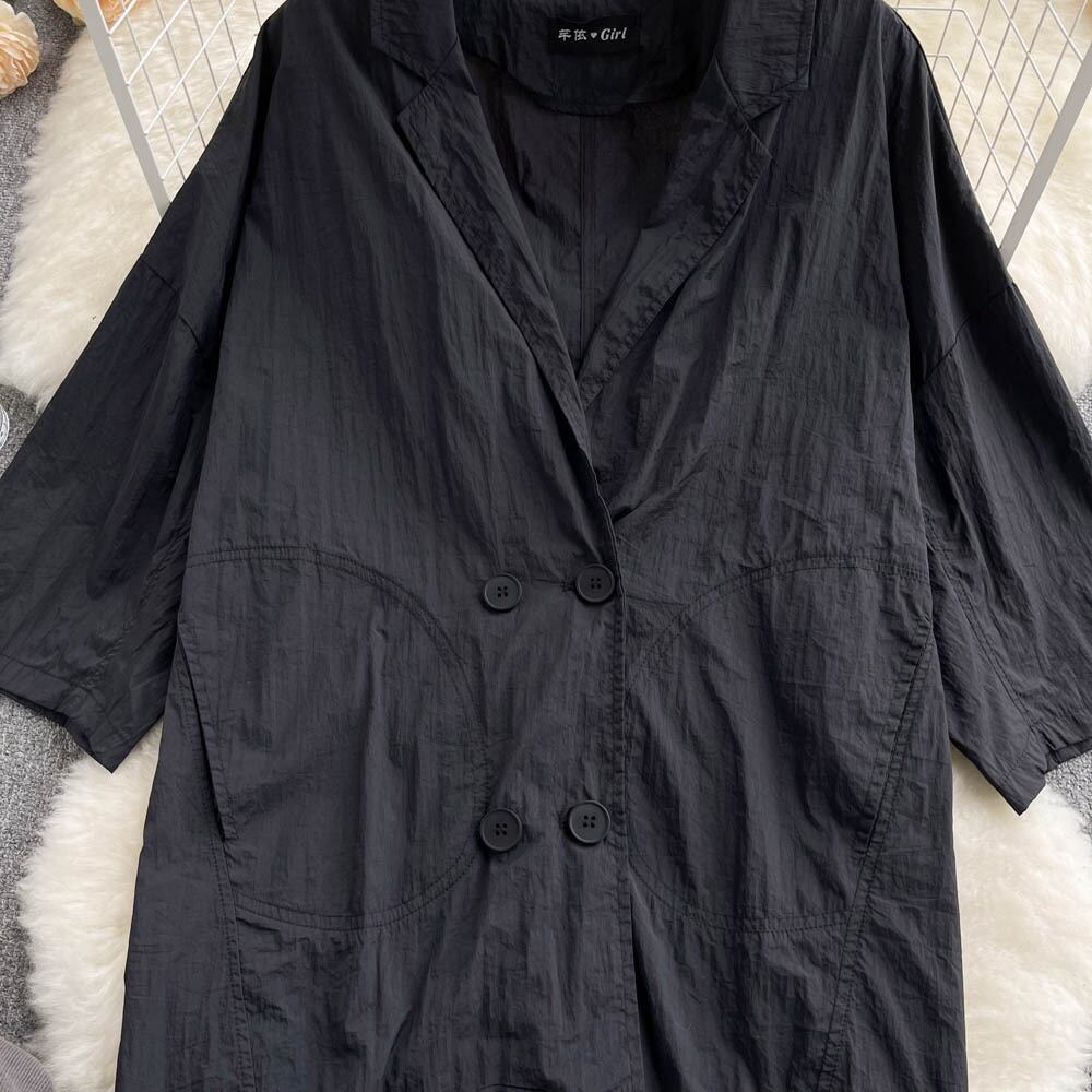 フレンチレトロラペルダブルブレストカジュアル文学シャツレディース2022年夏新作ルーズプリーツトップ サマー 夏物 lyxaj98771469677
