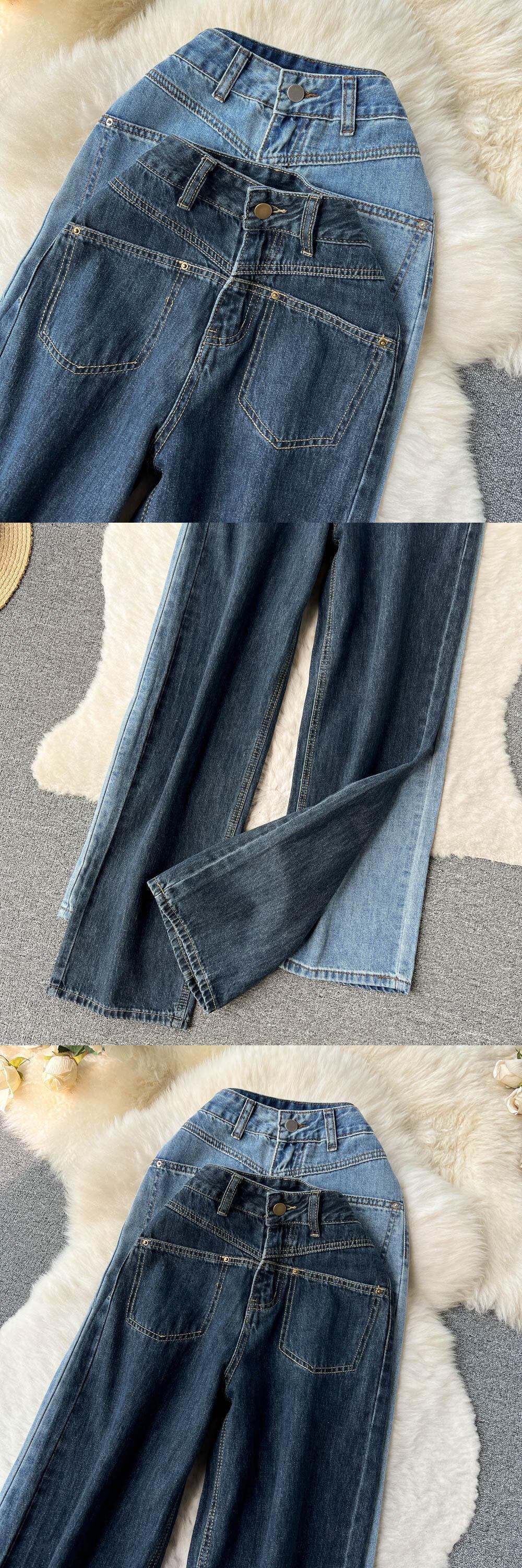 ワイドレッグ ジーンズ レディース ルーズ 春秋 新感覚 ポケット スリム ストレートレッグ モップ 長ズボン トレンド ロング スプリング 春物 オータム 秋物 lyxaj52142518402