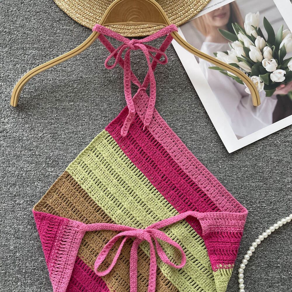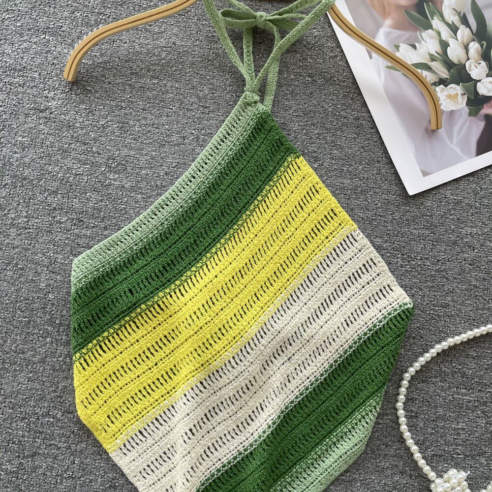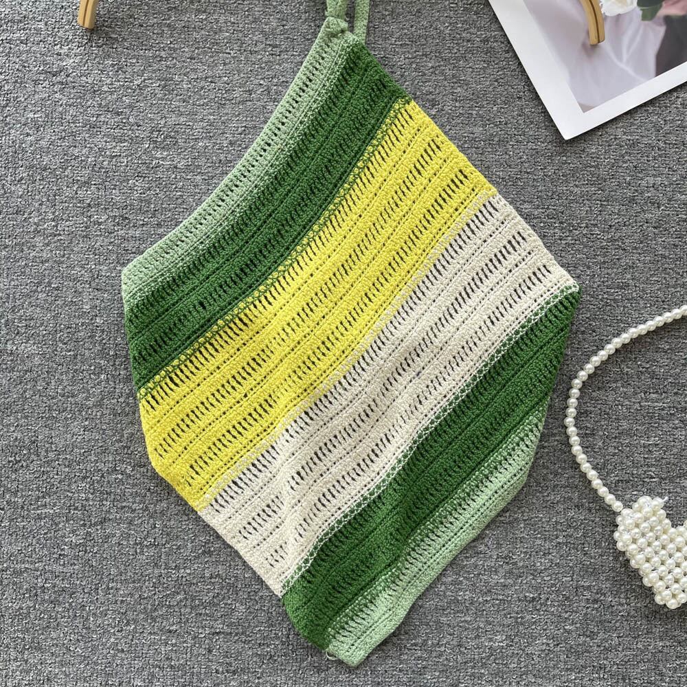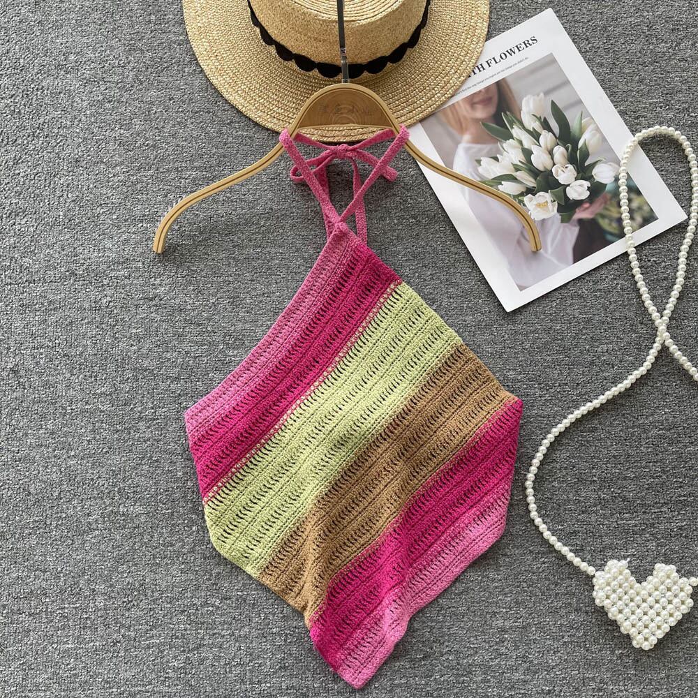 夏の新デザインセンスイレギュラーニッチニット中空ジャカードスリング吊りネックセクシーチューブトップベストトップ サマー 夏物 lyxaj82563913409