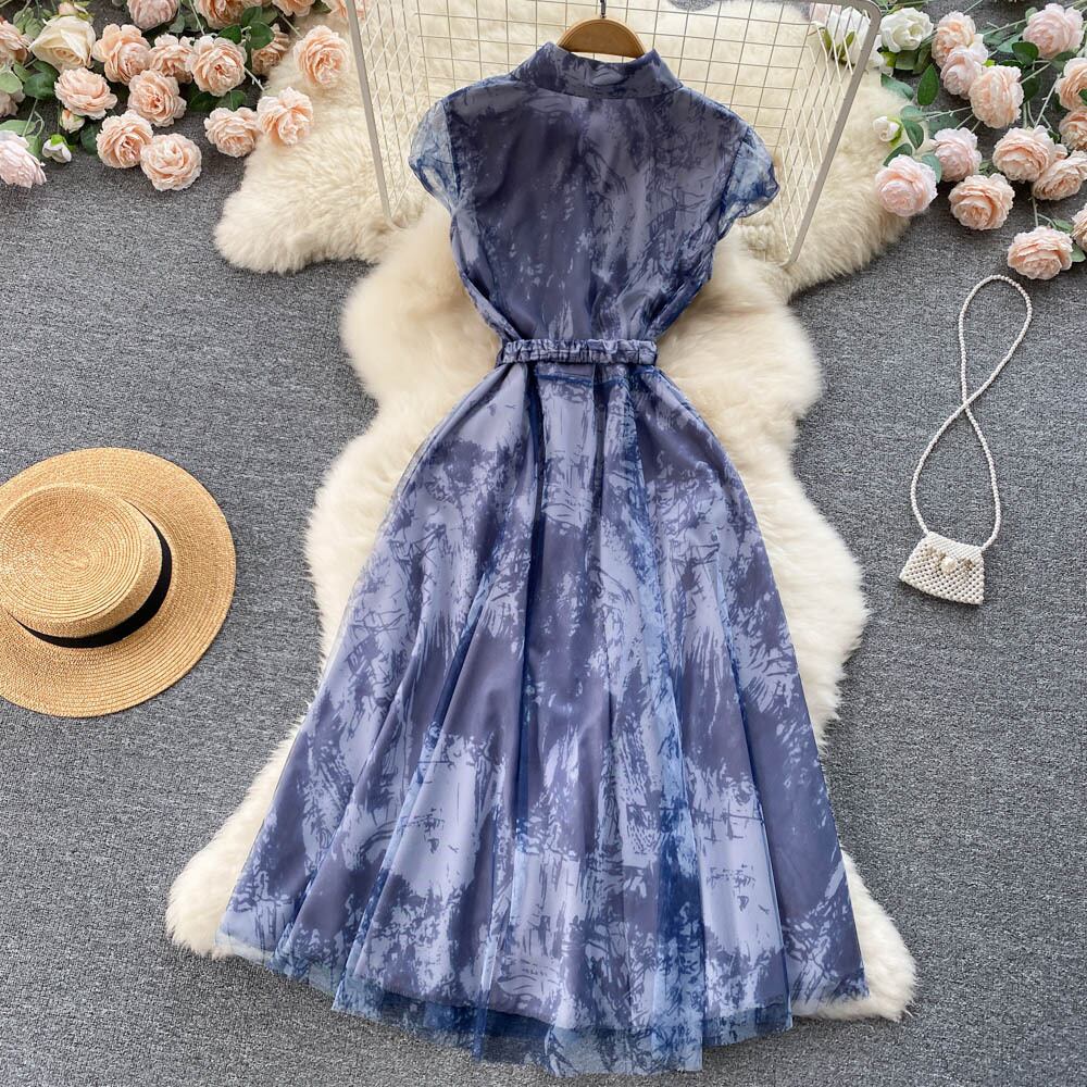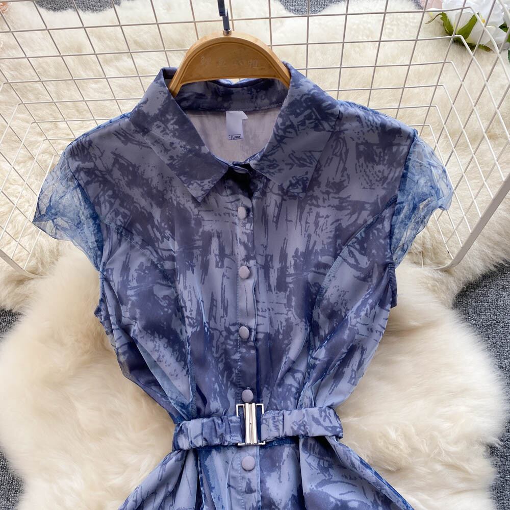 コートスタイルの小さなドレス有名人のハイエンドの婦人服のデザインセンスメッシュガーゼスリムノースリーブの気質のドレスの女性の長い夏 ロング サマー 夏物 lyxaj47091932248