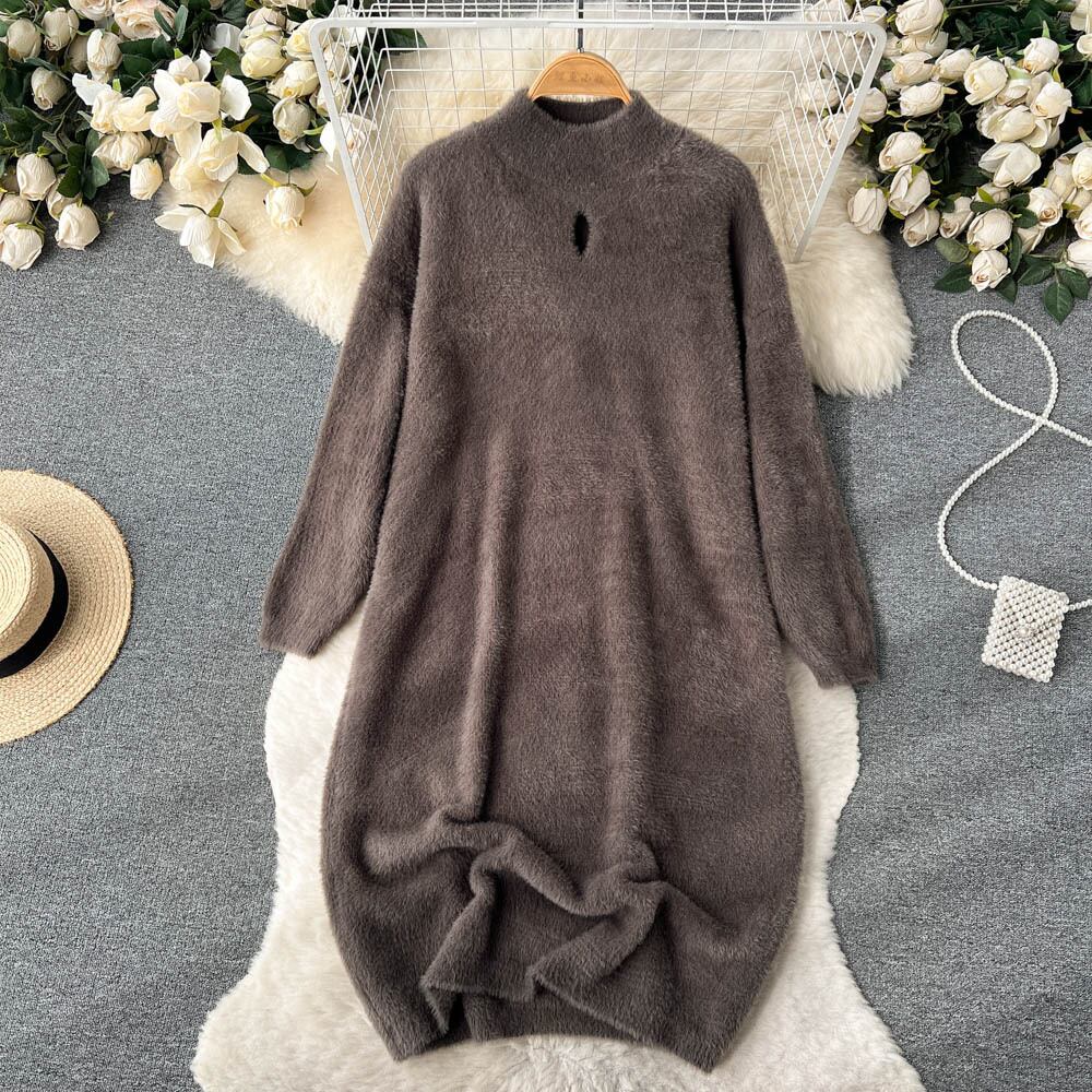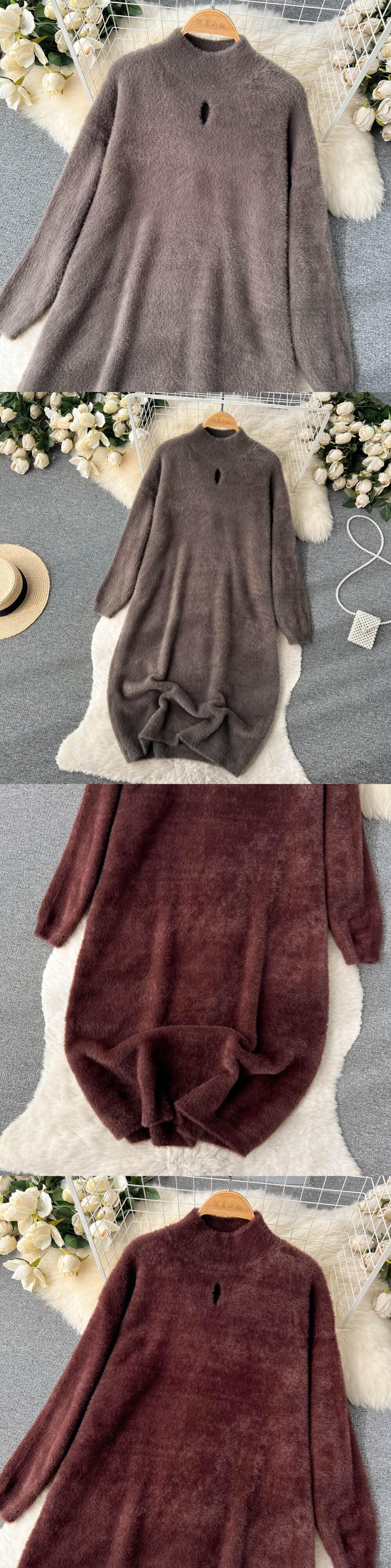 秋と冬の新しい豪華なベルベット中空ルース セーター スカート女性の膝肥厚ミッドレングス ソフト ワックス ニット ドレス オータム 秋物 ウィンター 冬物 lyxaj87805077481