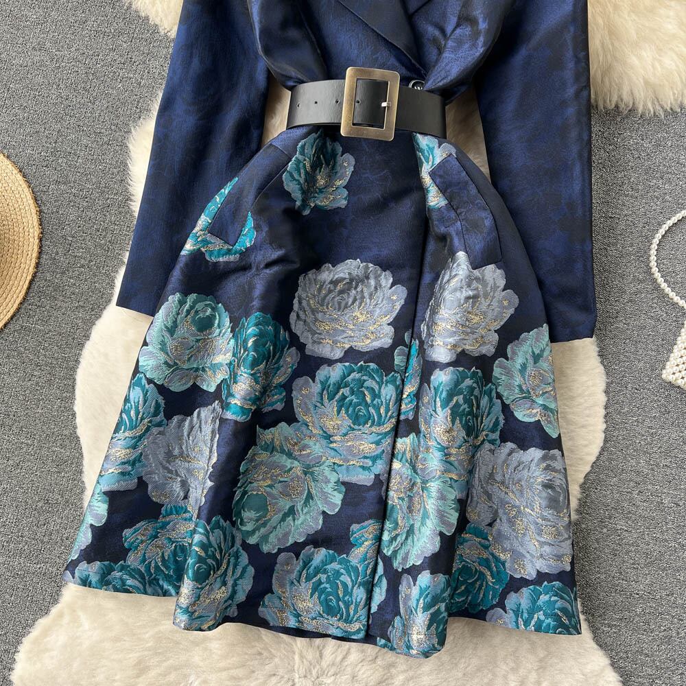 春と秋のヨーロッパとアメリカの有名人の気質の自己修養ジャカードミッドレングスの長袖のドレスの女性のラペルバッグヒップAラインのスカート ロング スプリング 春物 オータム 秋物 ヨーロピアン lyxaj27185526196