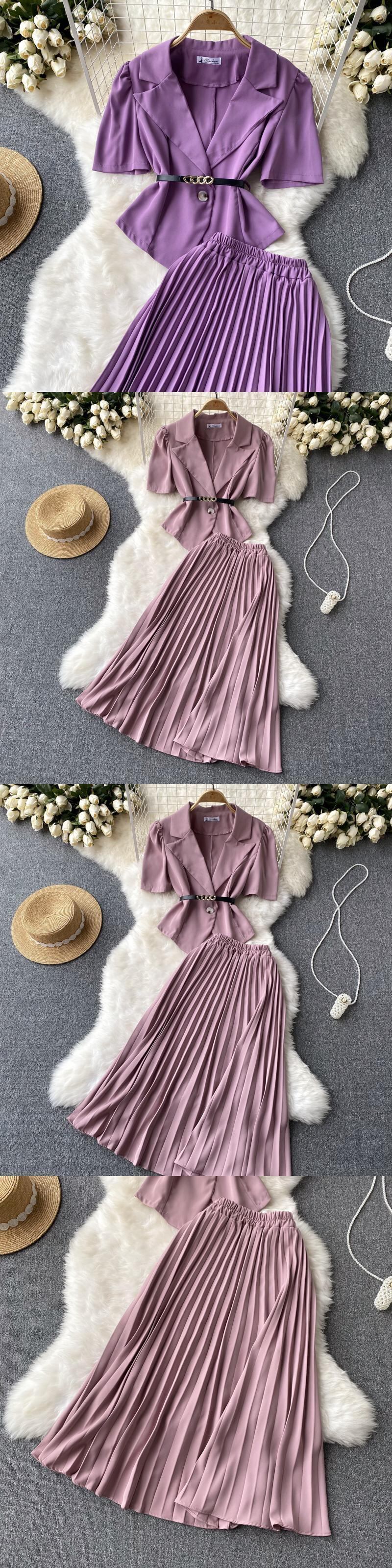 軽やかで馴染みのあるスタイルスーツ レディースラペルショートイレギュラートップ+ミドル丈プリーツスカートのツーピーススーツ lyxaj63491786835