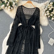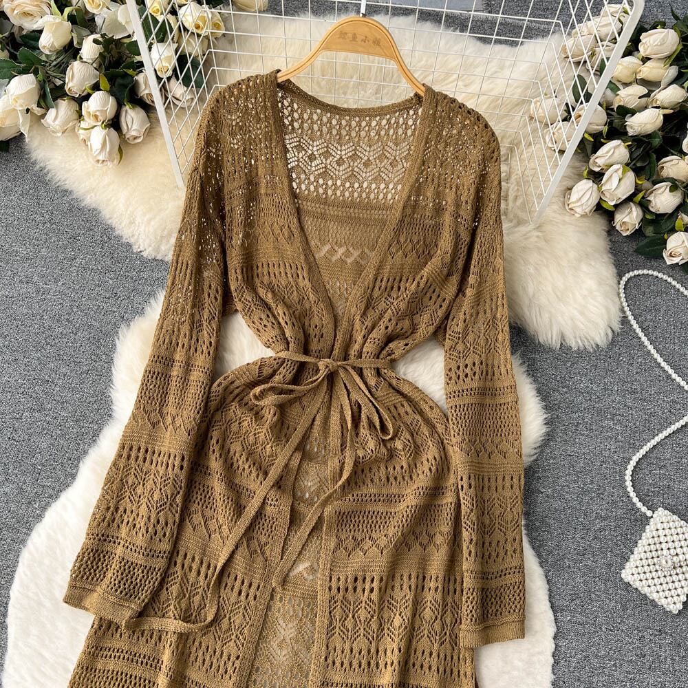 ボヘミア 春夏 カジュアル カーディガン ワンピ フェミニン 中空 旅行 休日風 スリット ロング ショール トレンド スプリング 春物 サマー 夏物 lyxaj987308077