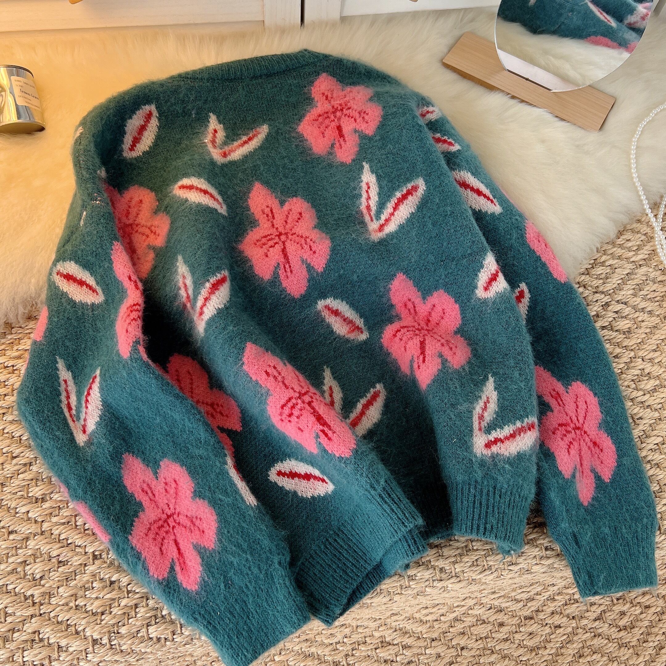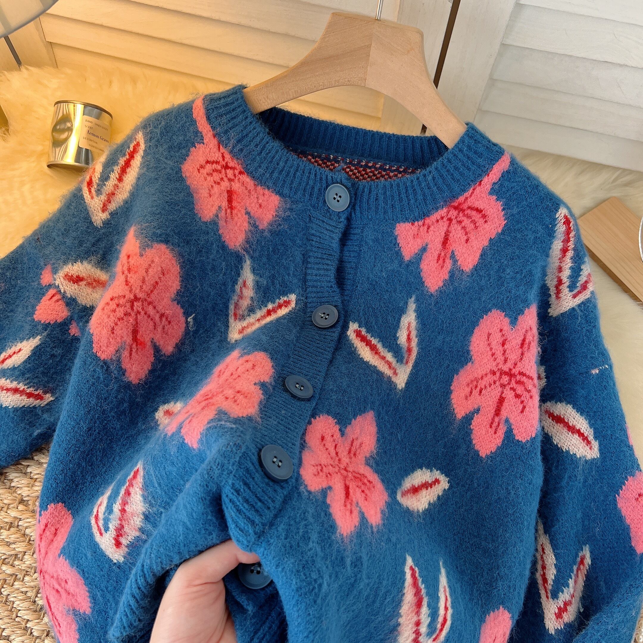 2022 インスタイルエレガントフェミニンレースラペルプリントセーターコート女性怠惰なスタイルルーズカーディガン lyxaj96966312030