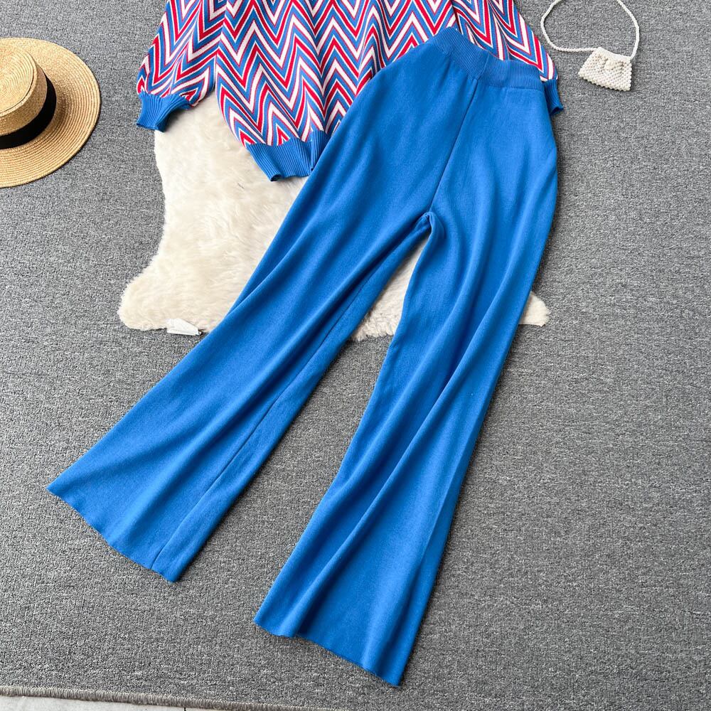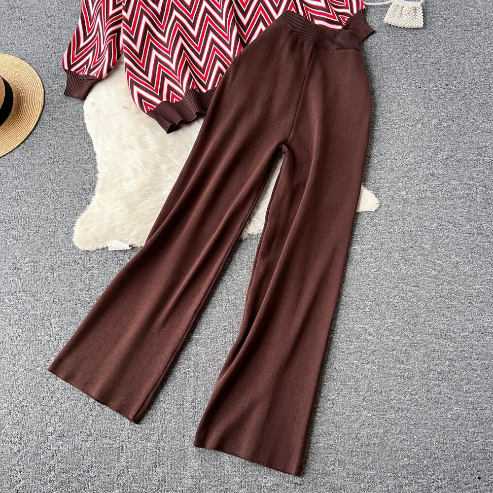 秋と冬のレトロな怠惰な風セーター スーツ女性の菱形プリント セーター + ドレープ ワイド パンツ 2 点セット トレンディ オータム 秋物 ウィンター 冬物 lyxaj81219498384