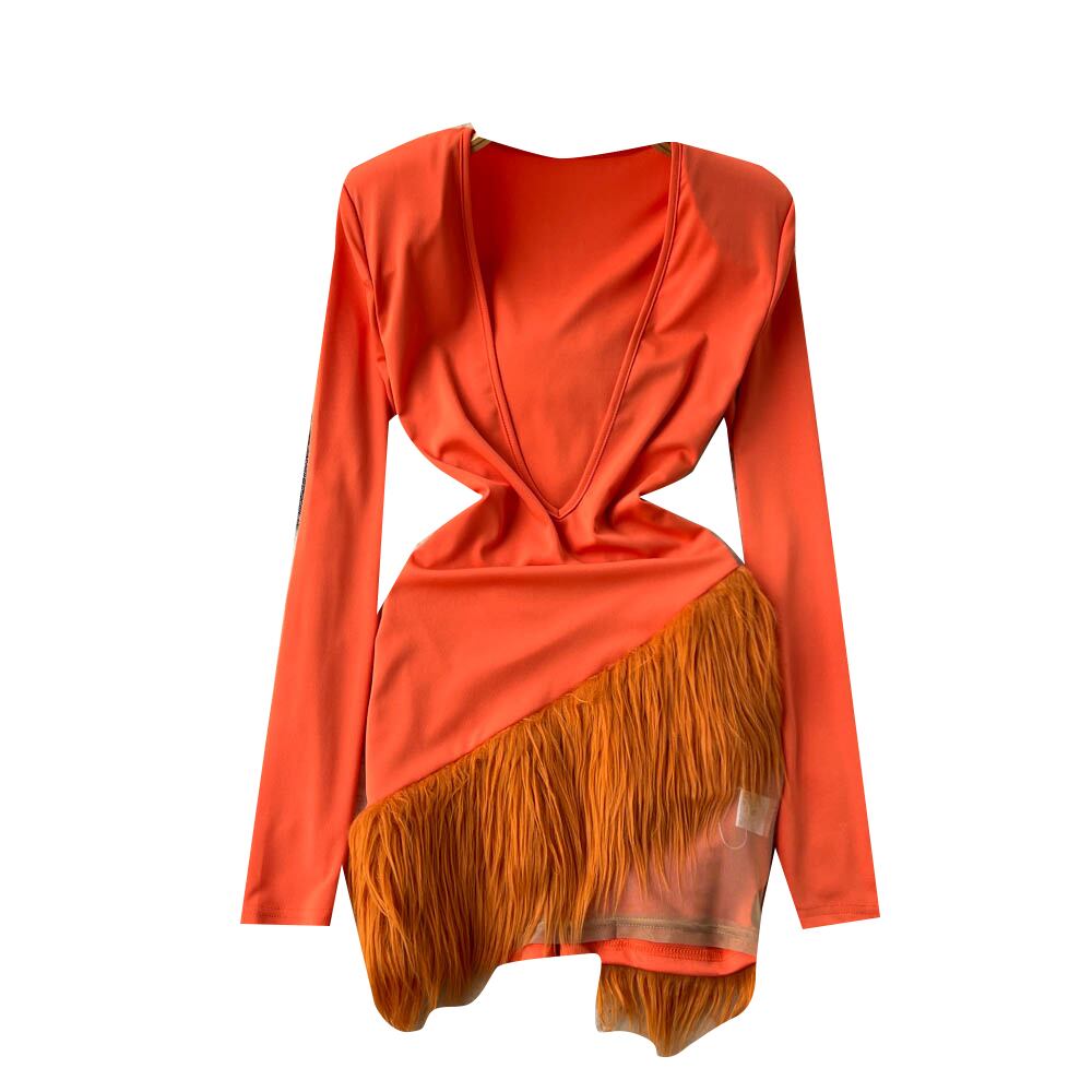 欧米風セクシーな深いVネック春秋フレンチニッチウエストデザインセンステルレディースバッグヒップワンピース スプリング 春物 オータム 秋物 ヨーロピアン lyxaj46258244861