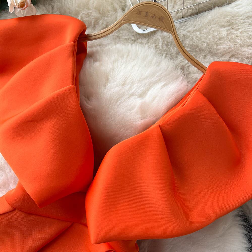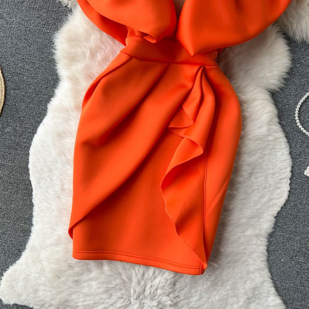 ヨーロッパとアメリカのスタイルの夏の新しいファッションのセクシーな V ネック フリル袖バックレス スリム フィット不規則なバッグ ヒップ ドレス サマー 夏物 Vネック ヨーロピアン lyxaj23934828070