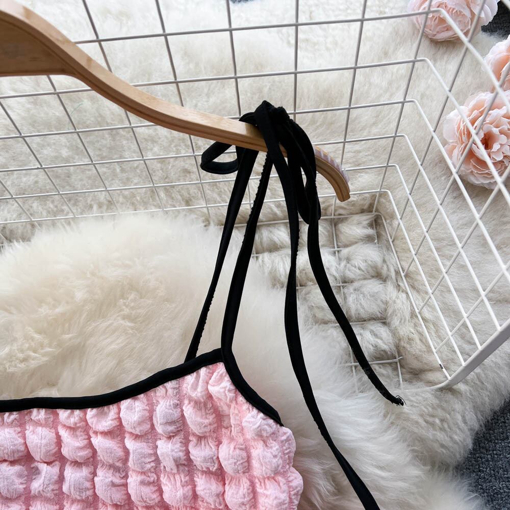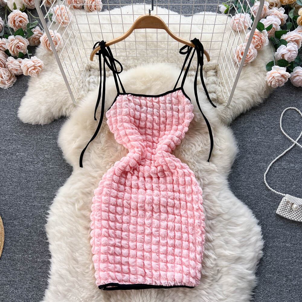 フランスの甘いストラップサスペンダードレス夏の婦人服 2022 新しいバブルチェック柄ウエストバッグヒップスカート 大人ガーリー スウィート キュート カジュアル サマー 夏物 lyxaj35155289646