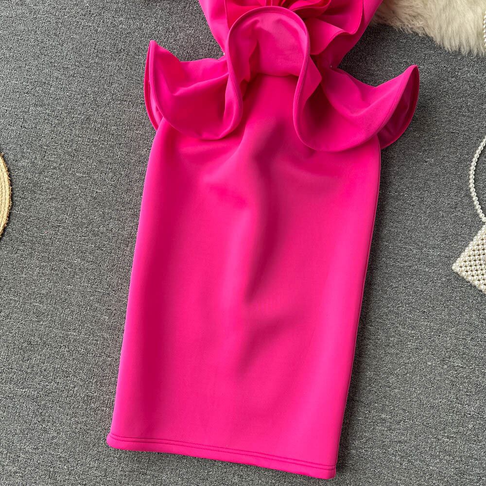 春夏新作セクシーオフショルダーVネックデザイン立体花芽飾りウエストバッグヒップイブニングドレスドレス スプリング 春物 サマー 夏物 フラワーデザイン lyxaj33778167754