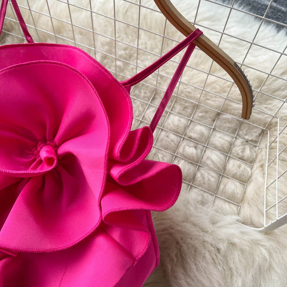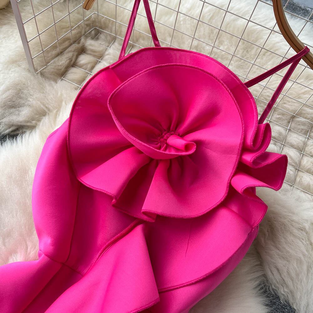 春夏立体フラワーセクシーチューブトップクロススリングバックレスフリルデザインイブニングドレスバッグヒップドレス スプリング 春物 サマー 夏物 フラワーデザイン lyxaj42401868085