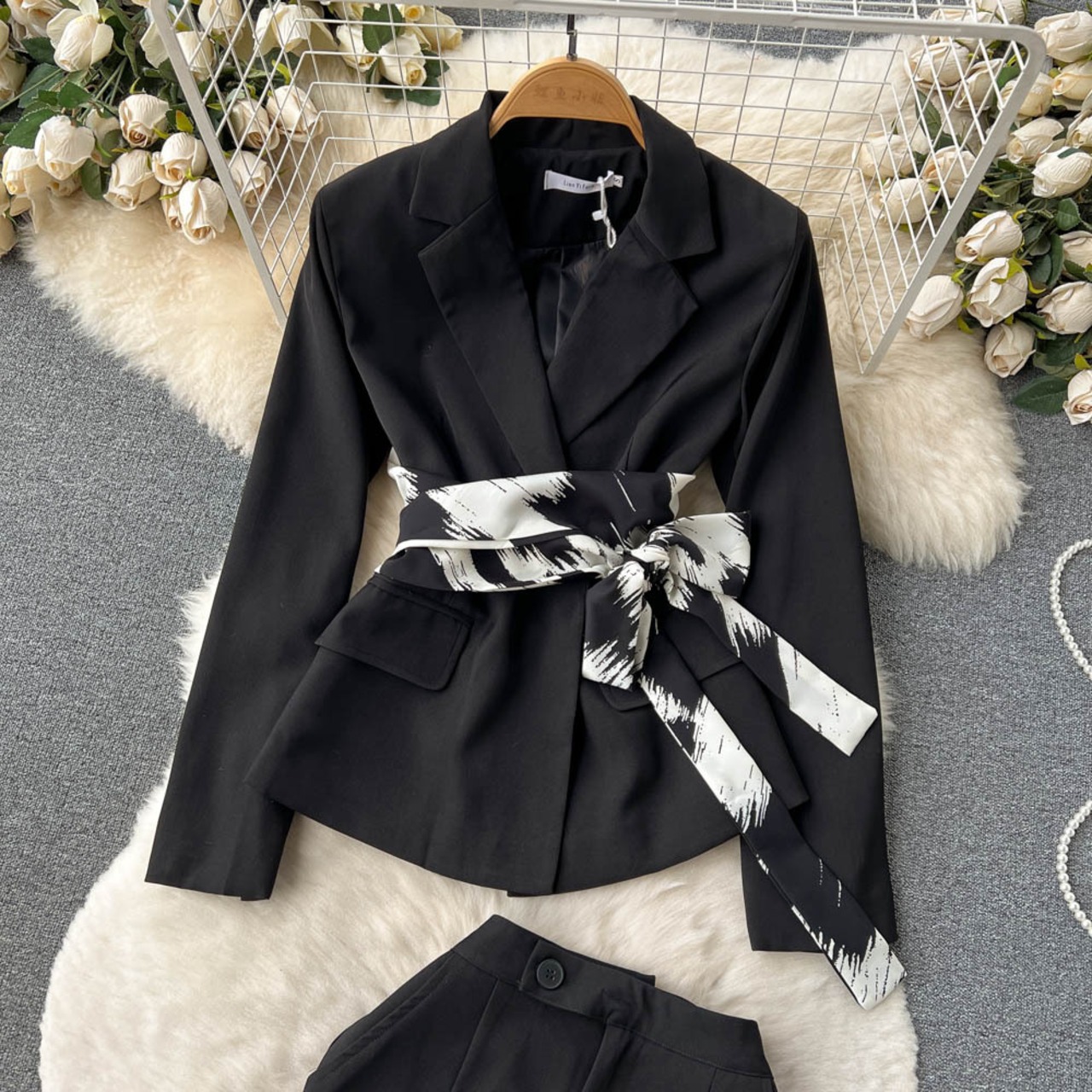 春と秋のライト高級プロ OL 気質スーツ プリント ウエスト スーツ ジャケット + ヒップ スカート 2 点セット スプリング 春物 オータム 秋物 lyxaj77842857756