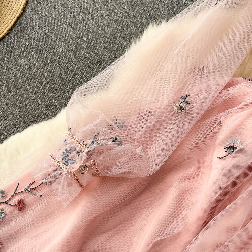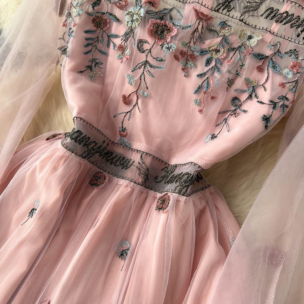 春と秋の新しいニッチなデザイン感覚ラウンド ネック レース レース刺繍長袖ドレス女性プリント ビッグ スイング ロング スカート スプリング 春物 オータム 秋物 Oネック lyxaj13741567235