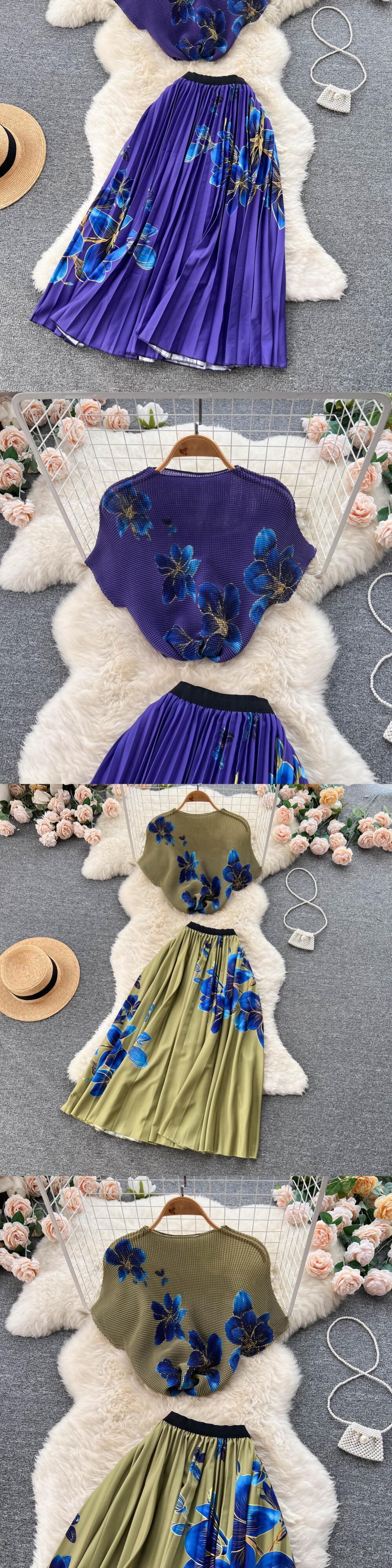 エスニック スタイル ツーピース スーツ女性の夏の刺繍ショート ノースリーブ トップ ハイ ウエスト ミドル丈プリーツ スカート ハイウェスト レッド 半袖 ハーフスリーブ サマー 夏物 lyxaj92000859497