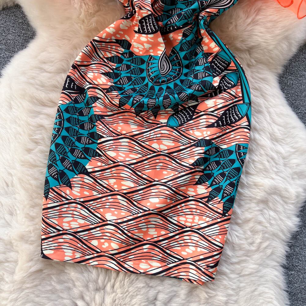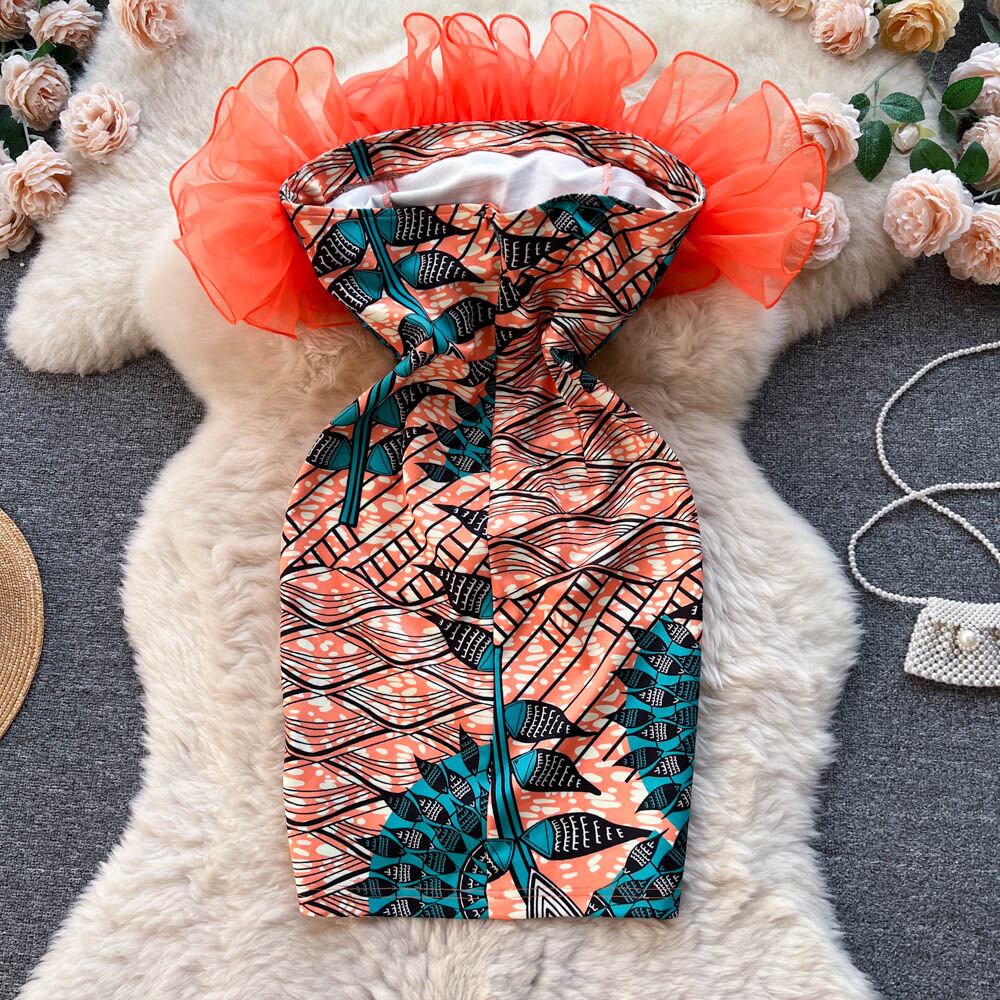 欧米風立体メッシュスプライシングワンネックチューブトップ個性プリントドレス女性洋風シックバッグヒップスカートトレンディ ヨーロピアン lyxaj49144431913