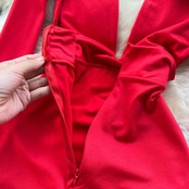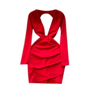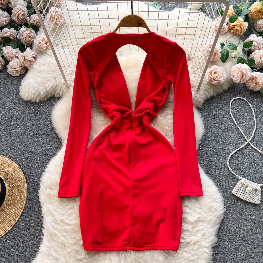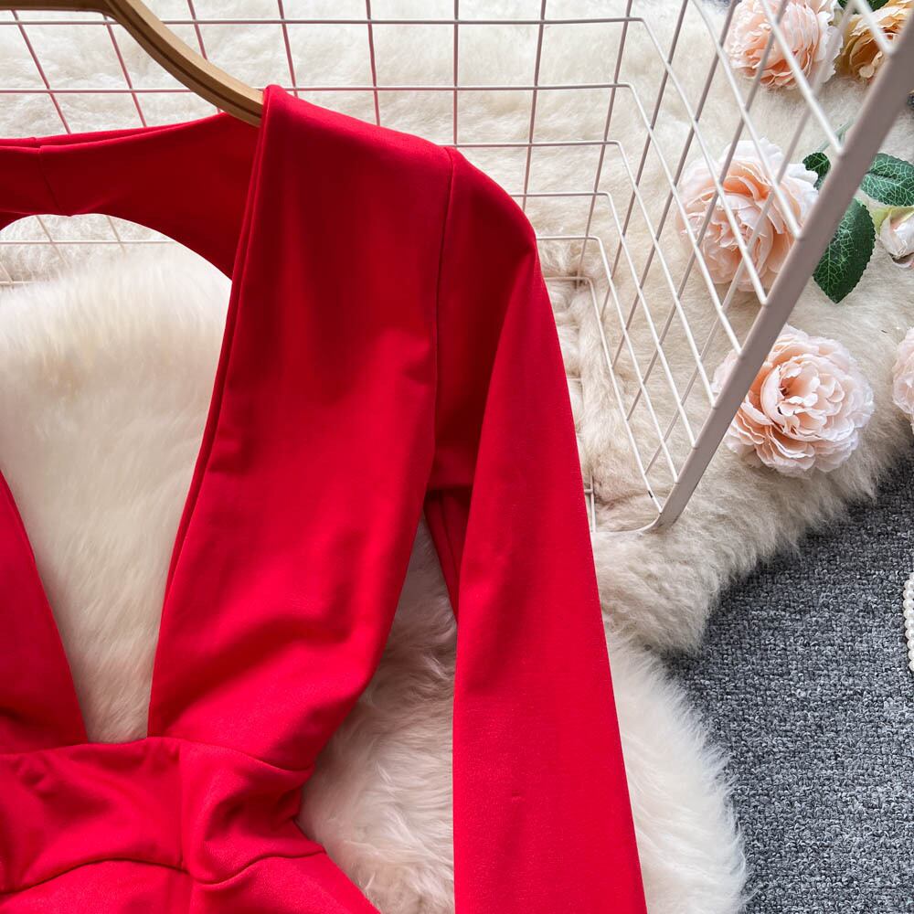 春と秋のデザインセンス気質セクシーな深い v ネック背中の開いた長袖タイトなバッグ ヒップひだスリム セレブ ドレス ロング スプリング 春物 オータム 秋物 Vネック lyxaj38002472718