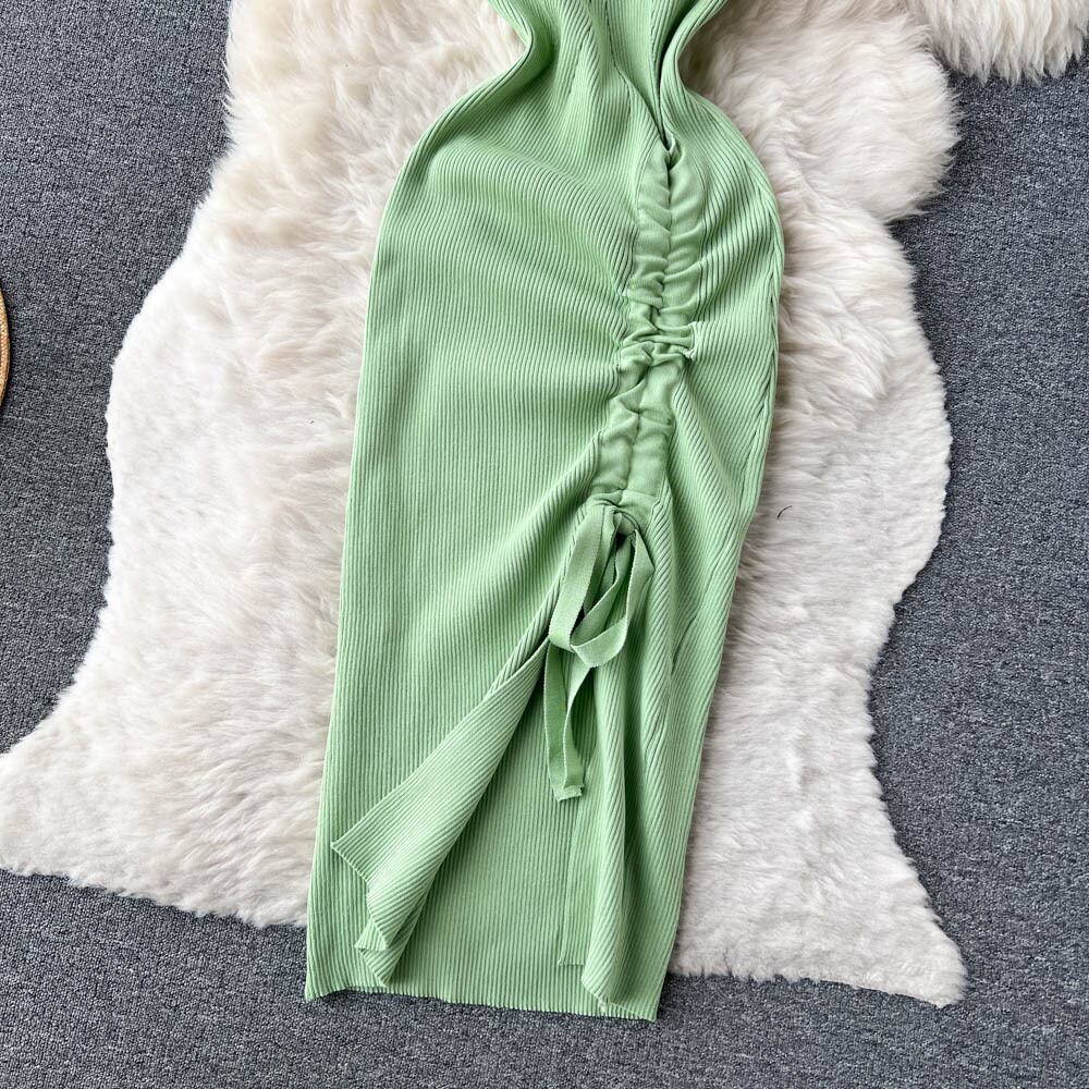 セクシーなノースリーブニットドレスの女性 2022 ワンショルダー高度なスリットボトムロングスカートトレンディ lyxaj82938737367