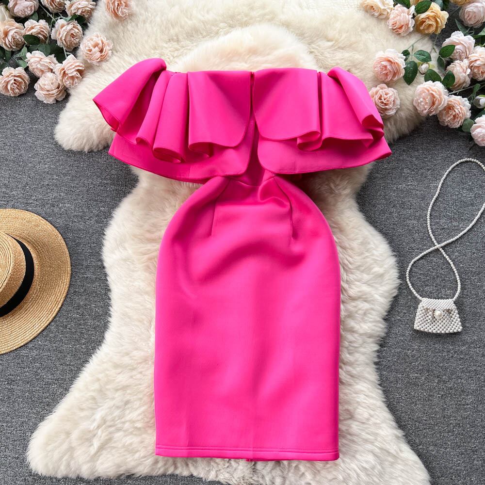 夏の新スタイルのストラップレスフリルラップ胸ドレス女性セレブ気質小さな香りのイブニングドレスバッグヒップスカート ラッフル サマー 夏物 lyxaj93028967063
